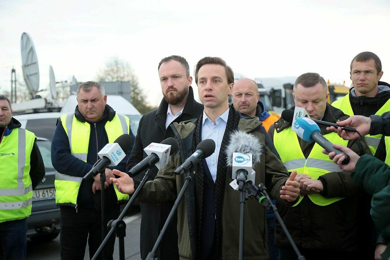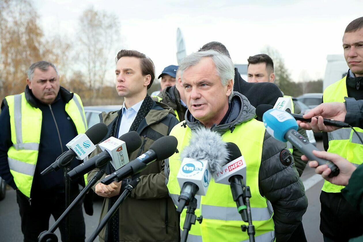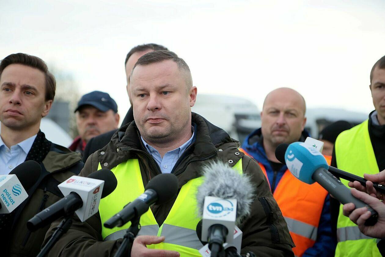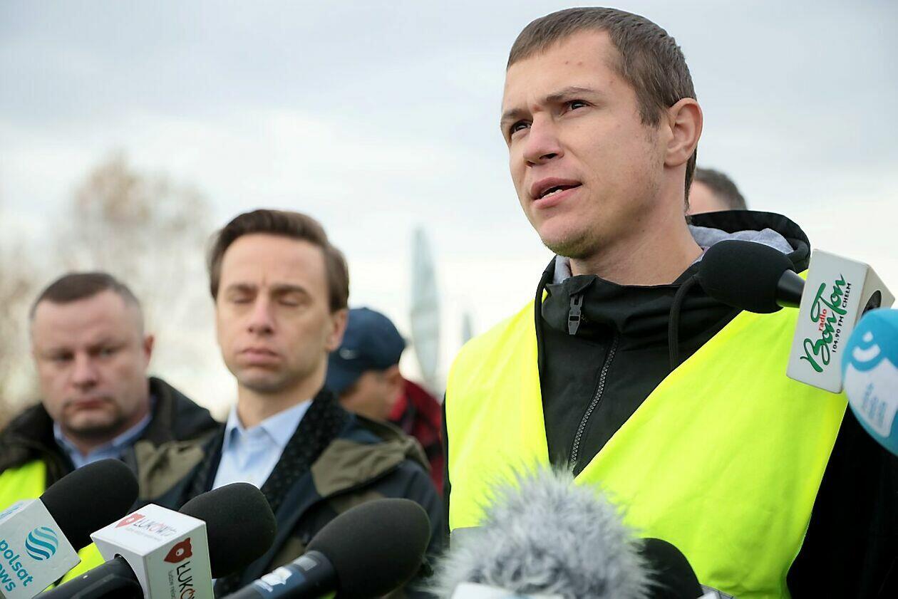 Konferencja Krzysztofa Bosaka podczas strajku w Dorohusku