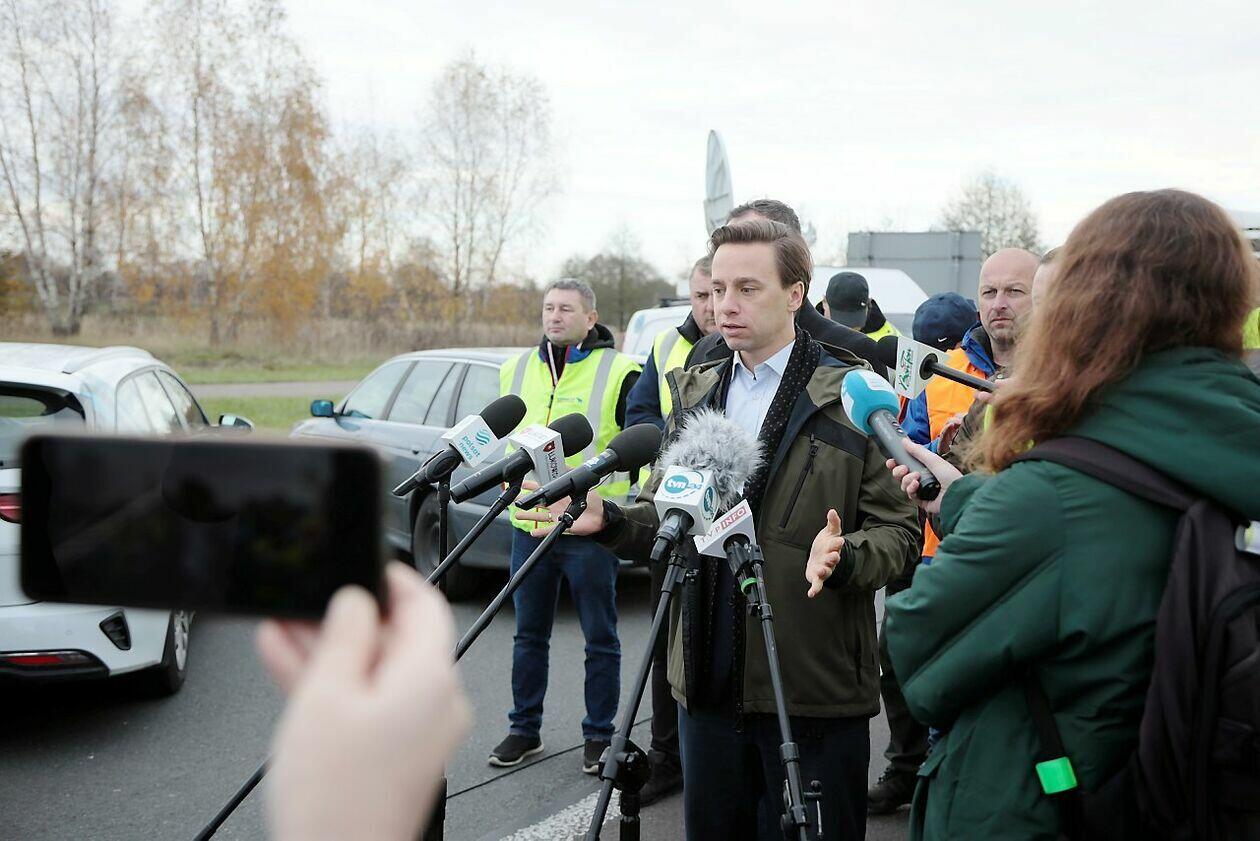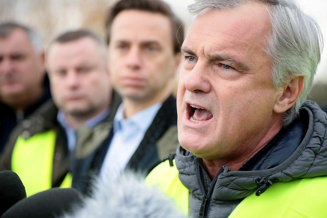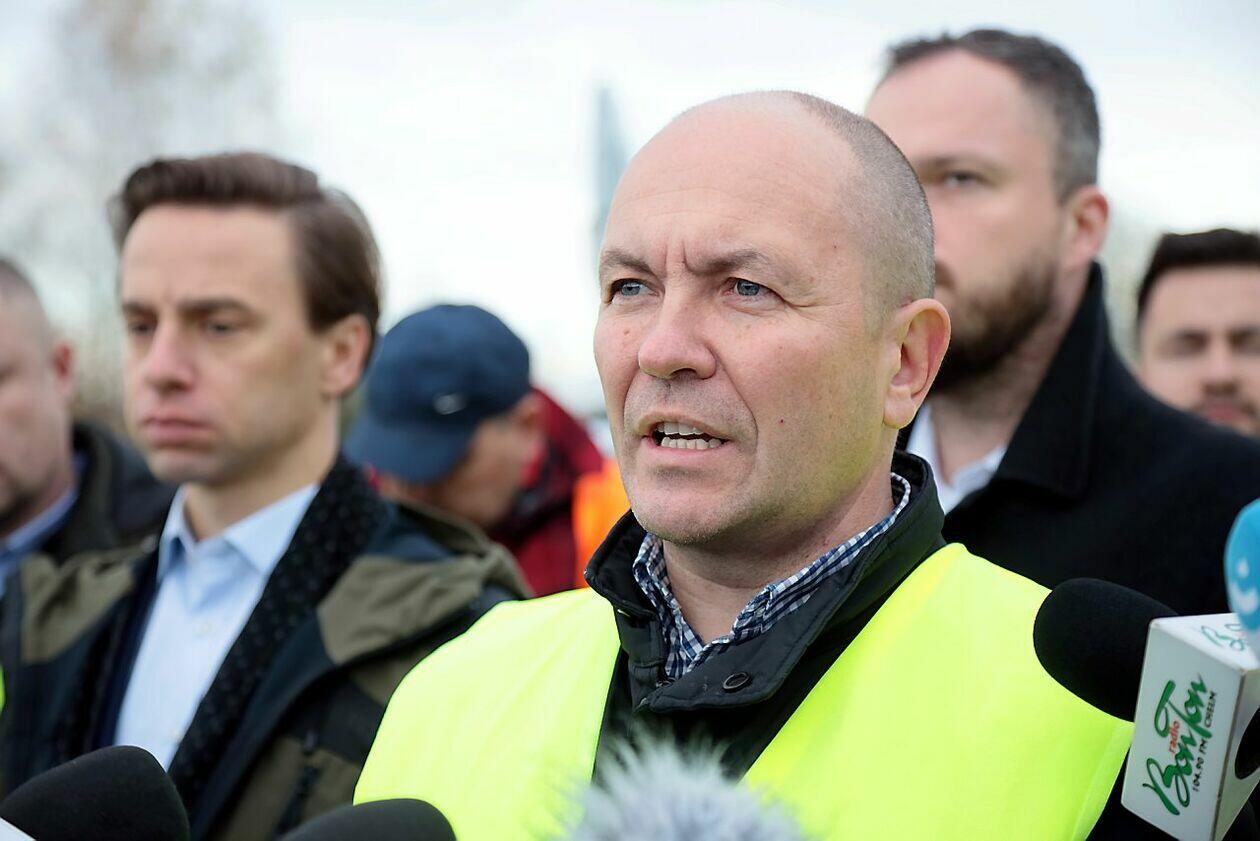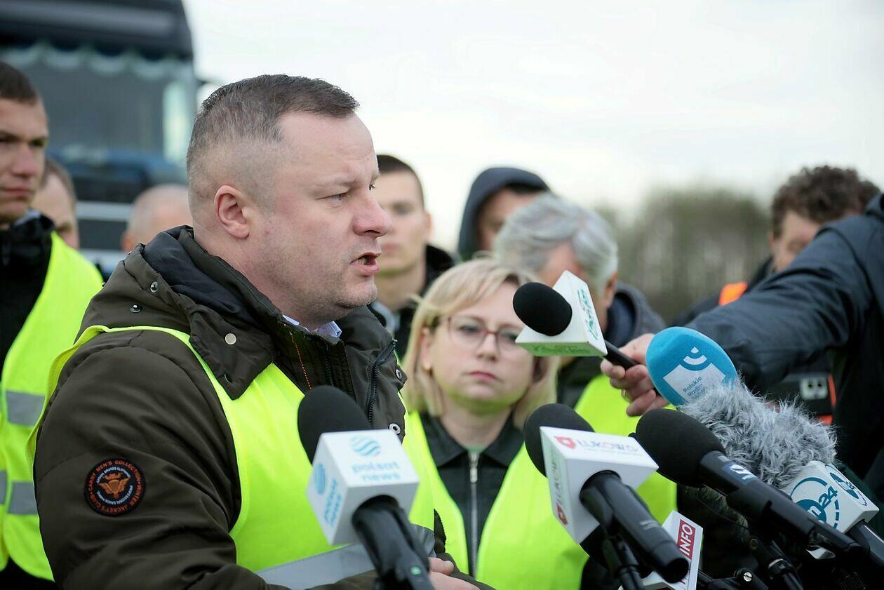 Konferencja Krzysztofa Bosaka podczas strajku w Dorohusku