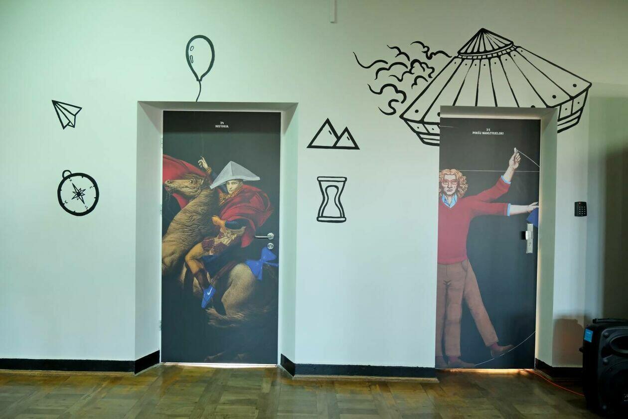 Projekt kreatywny MATCH - prezentacja grafik zdobiących korytarz SP 20