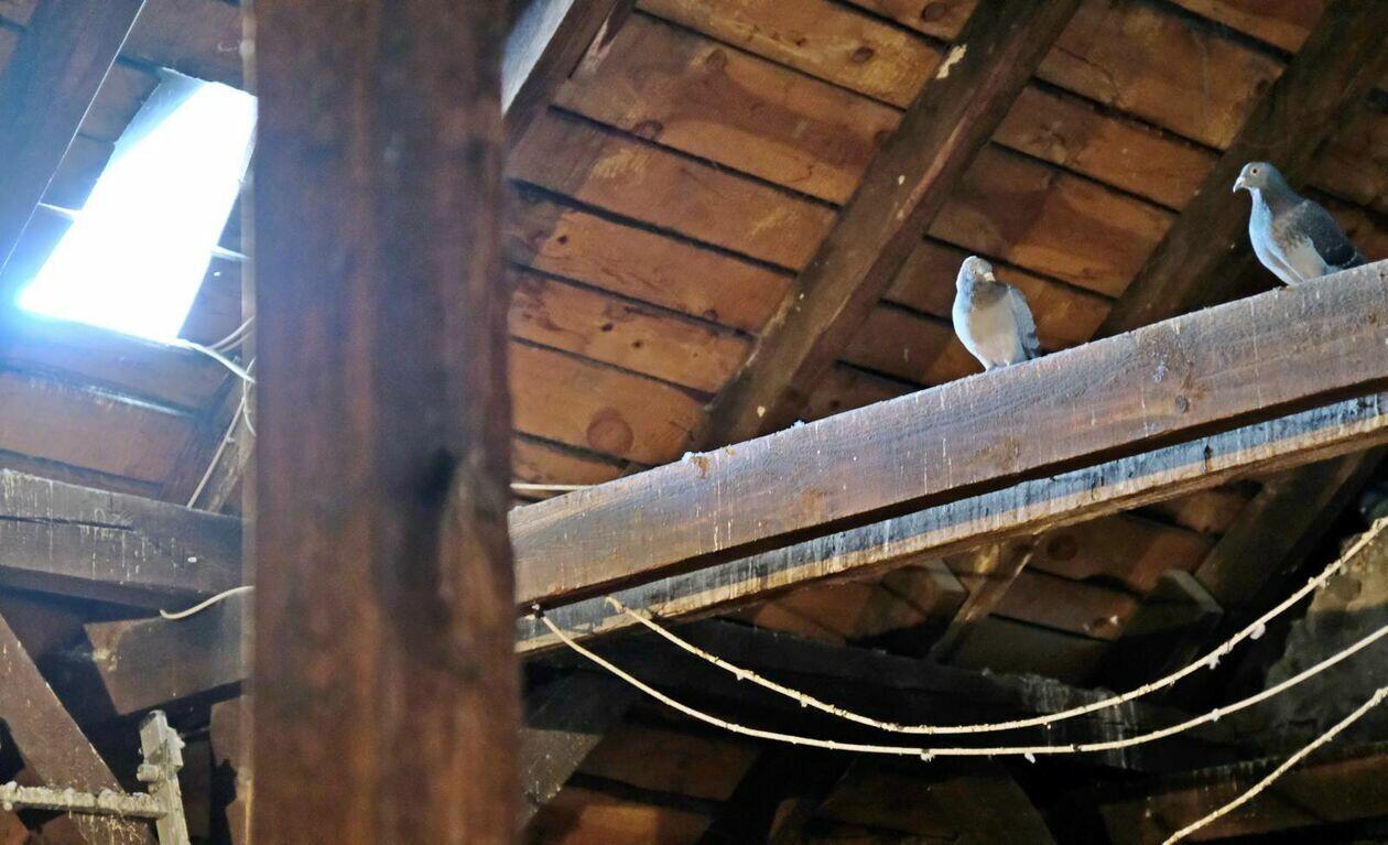 Strych kamienicy przy ul. Rynek 13 opanowany przez gołębie