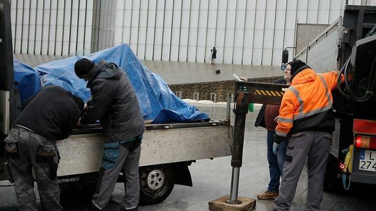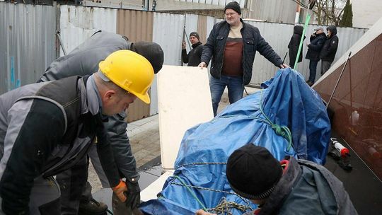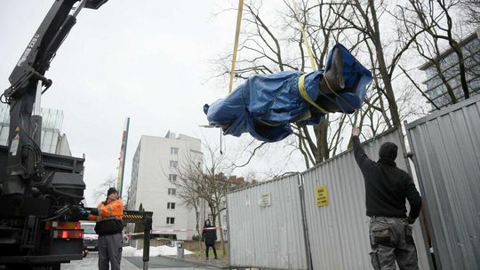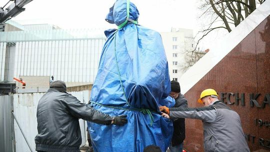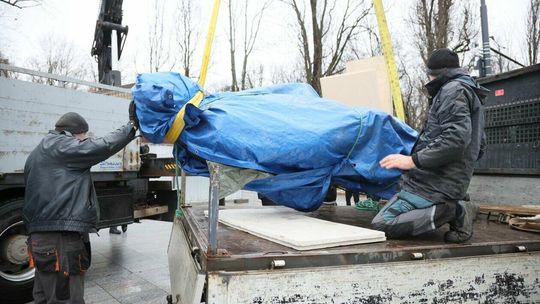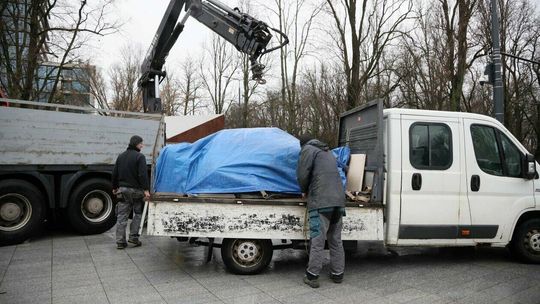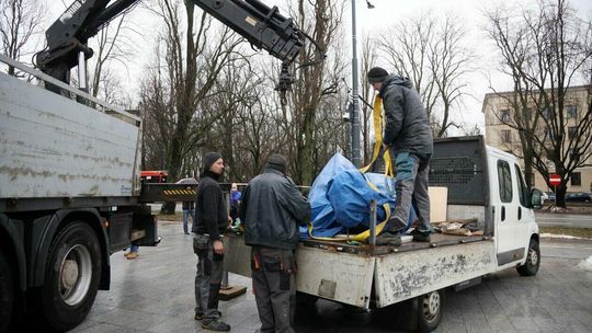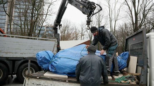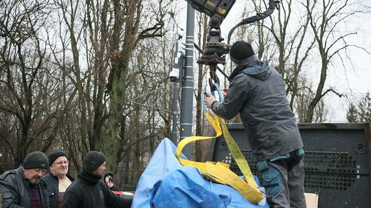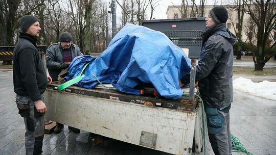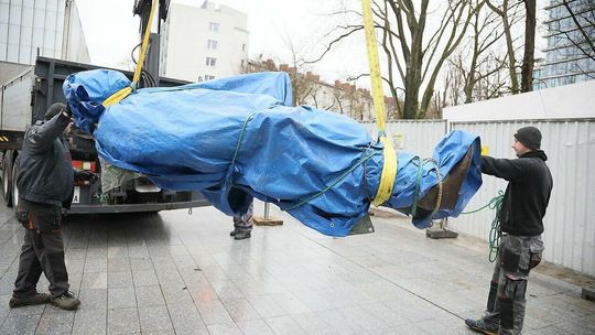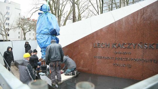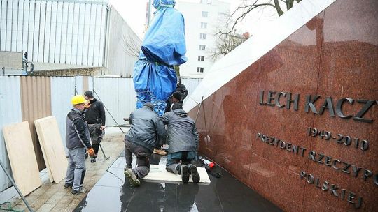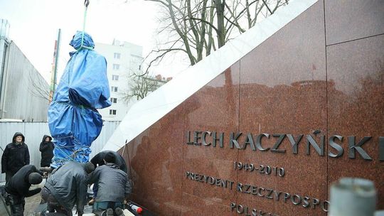 Montaż pomnika Lecha Kaczyńskiego