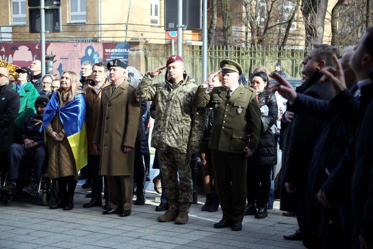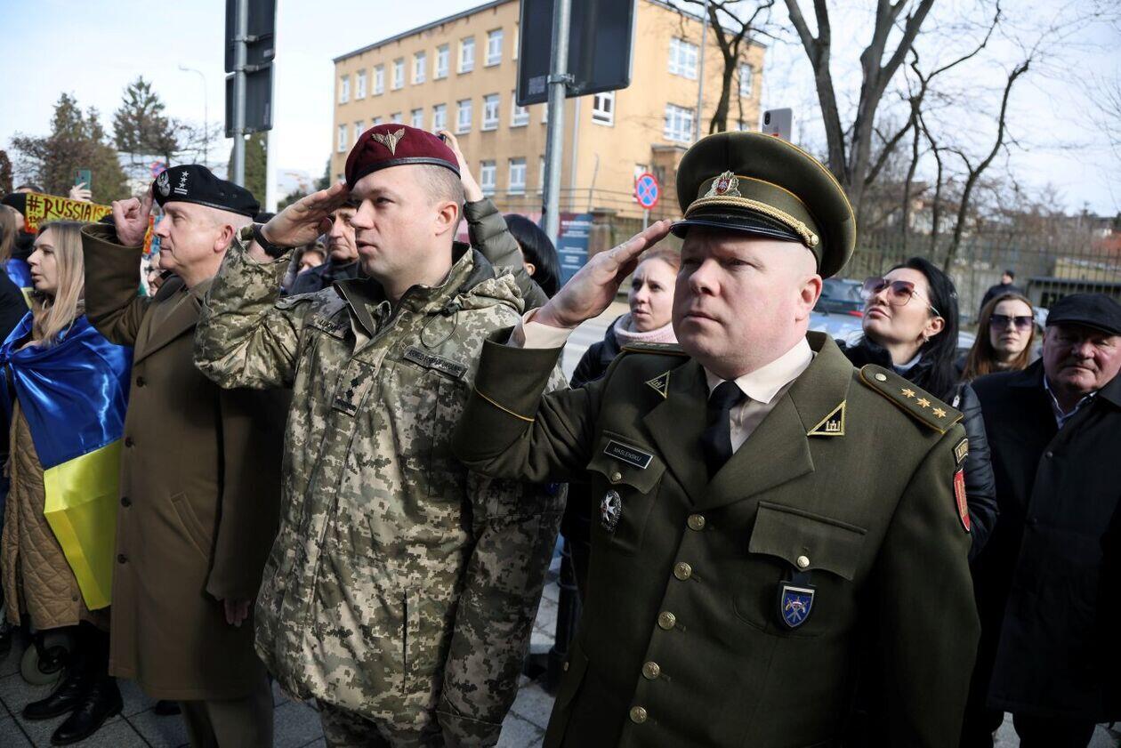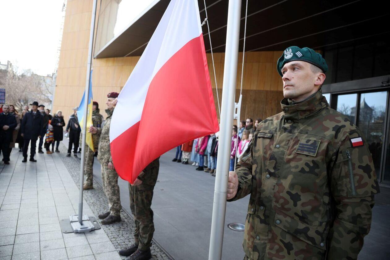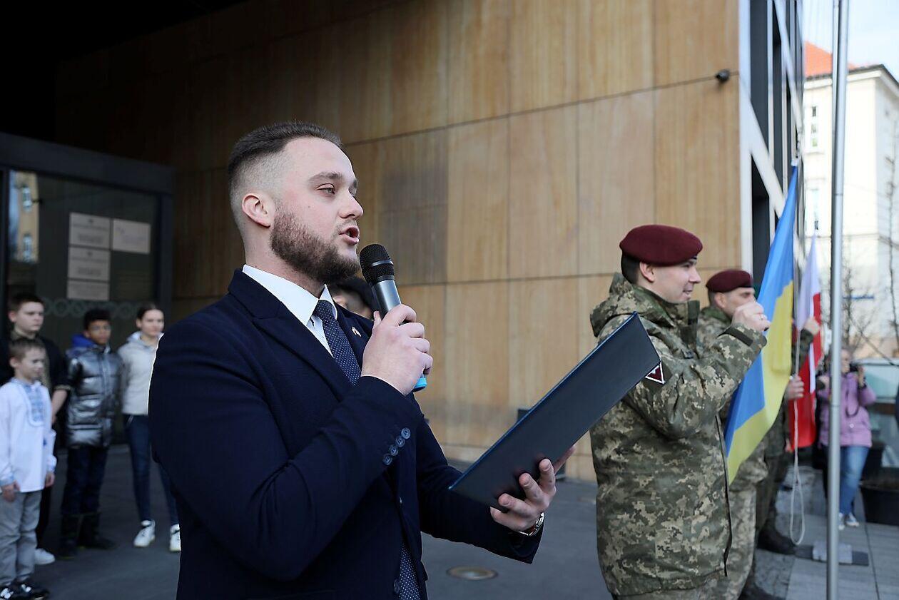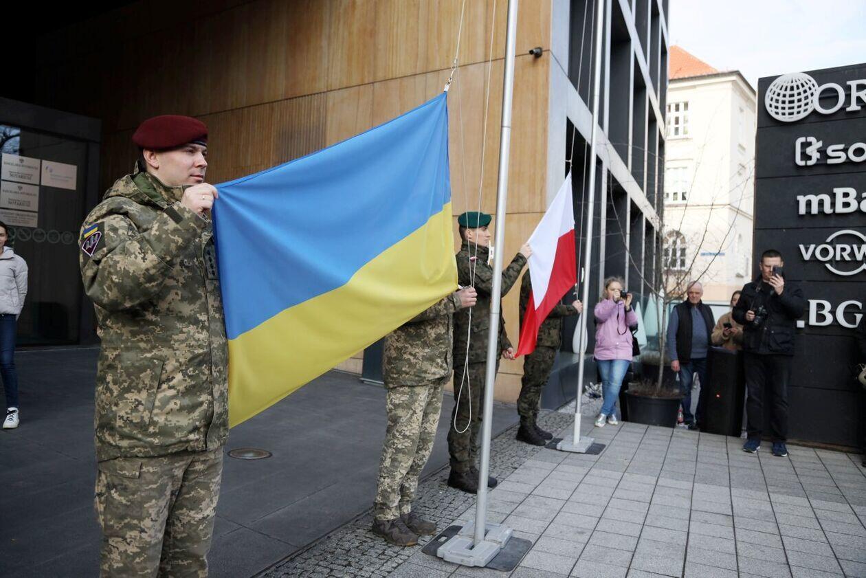 Podniesienie flag Polski i Ukrainy przed Konsulatem Ukrainy...