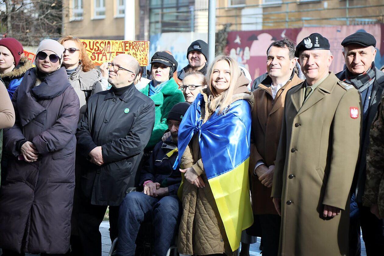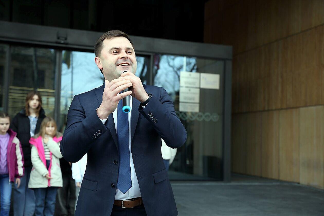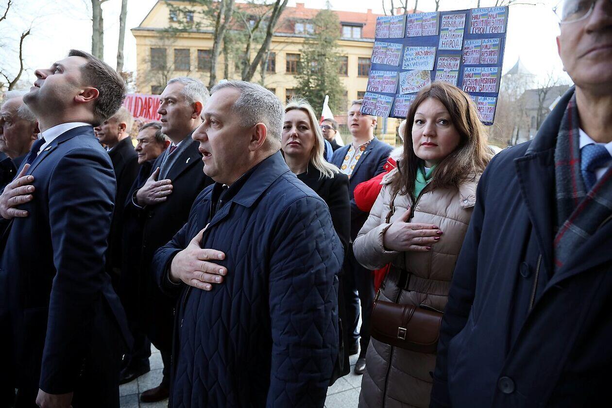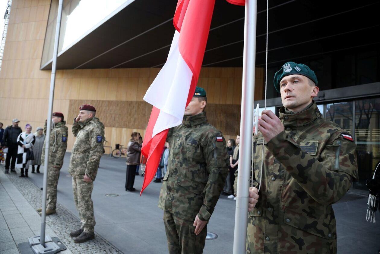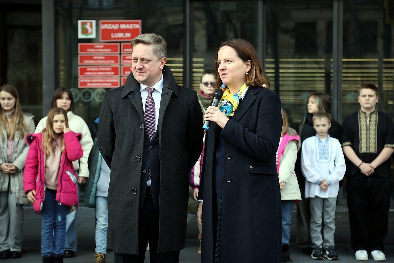 Podniesienie flag Polski i Ukrainy przed Konsulatem Ukrainy w Lublinie