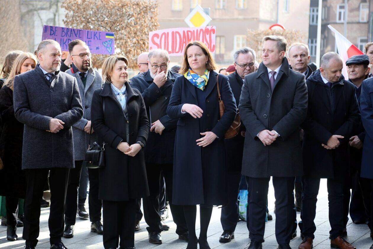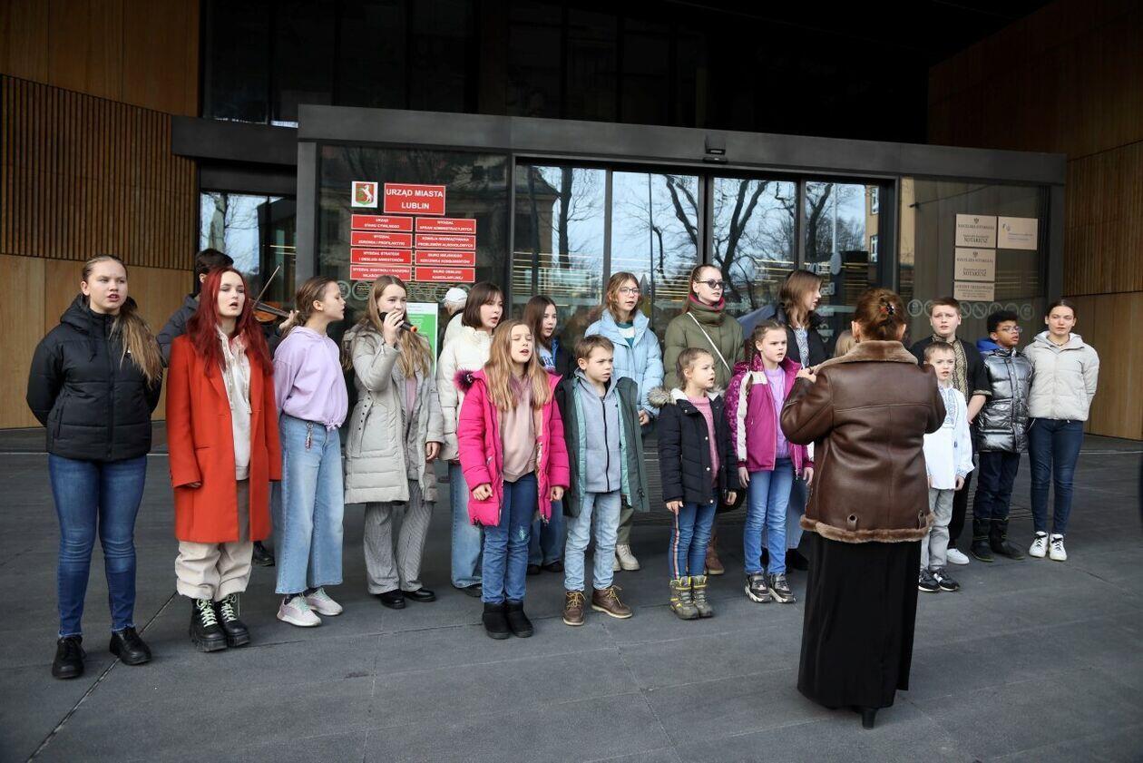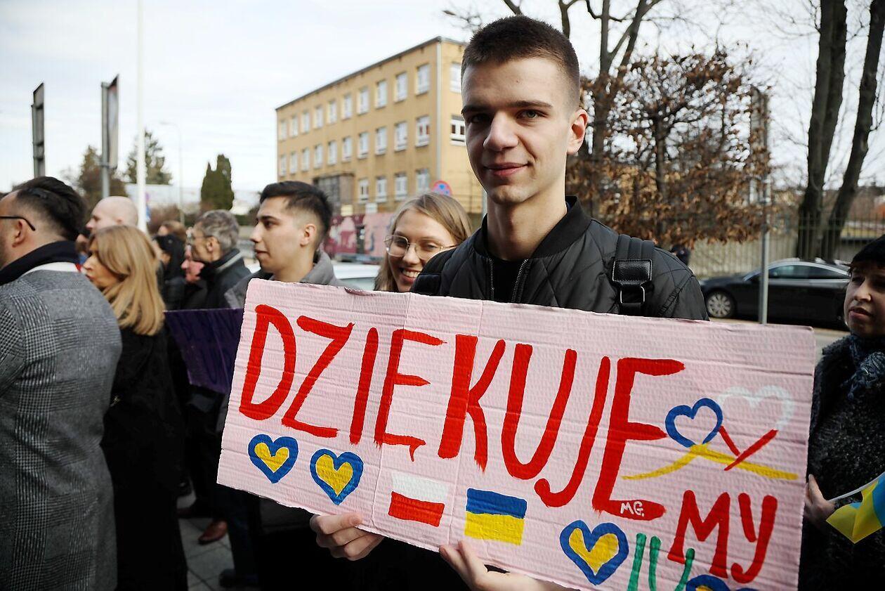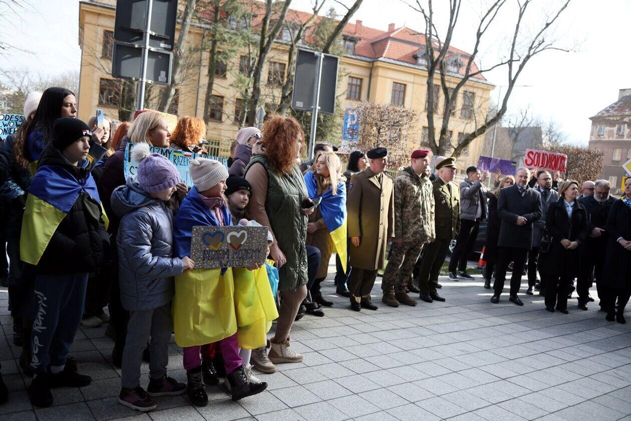 Podniesienie flag Polski i Ukrainy przed Konsulatem Ukrainy w Lublinie