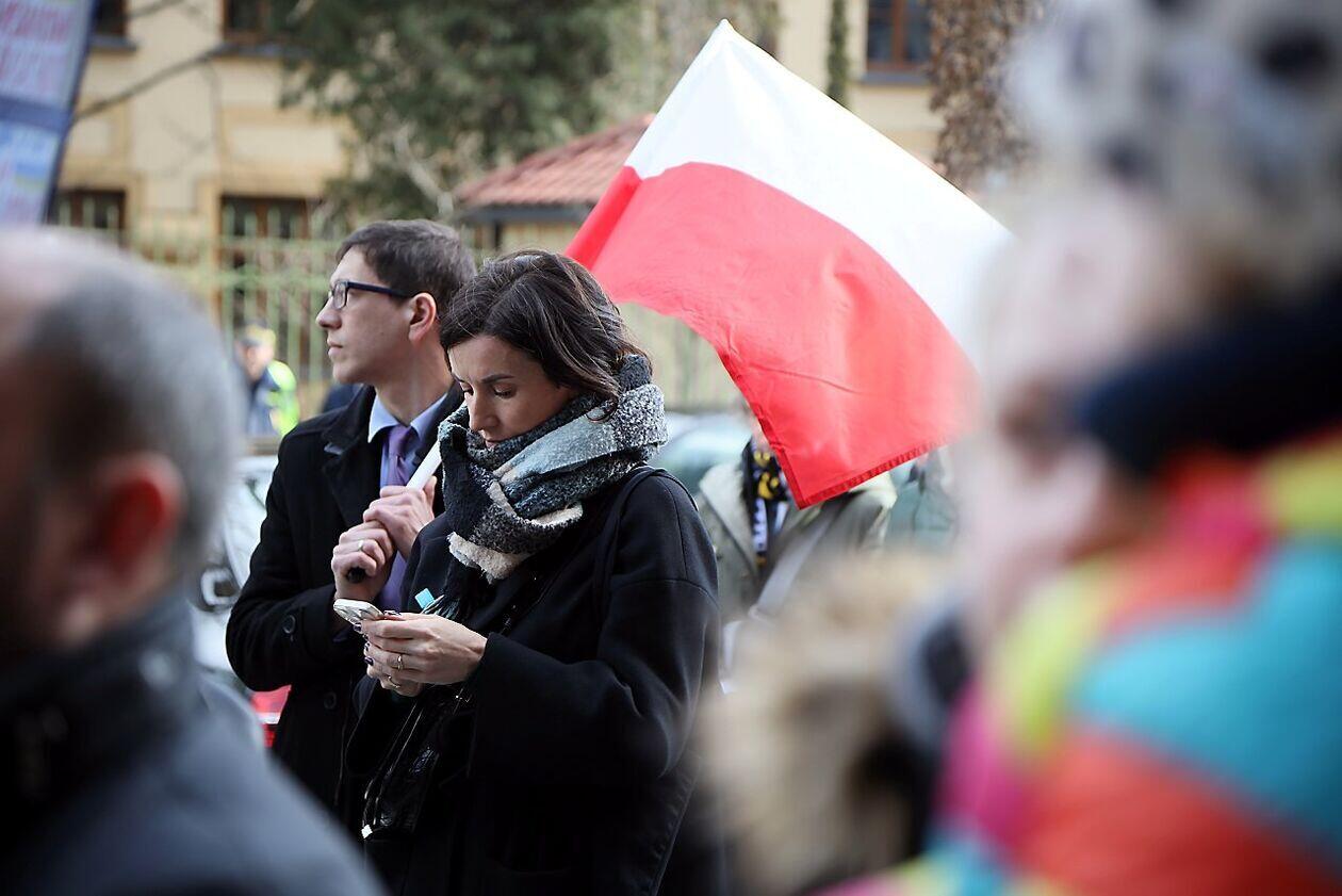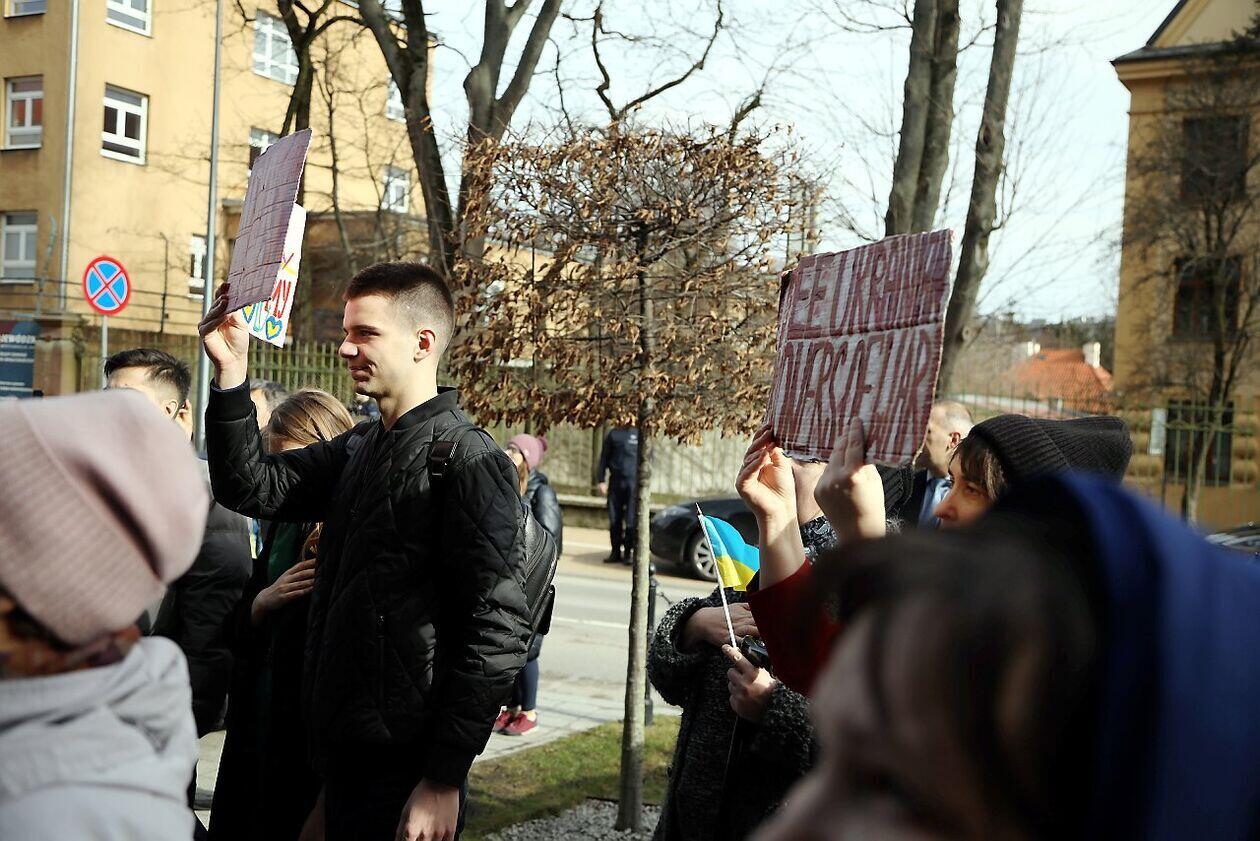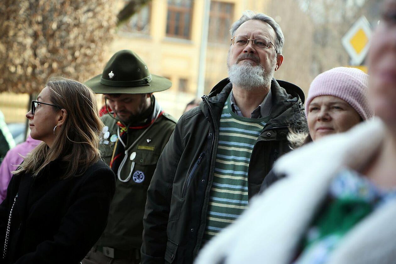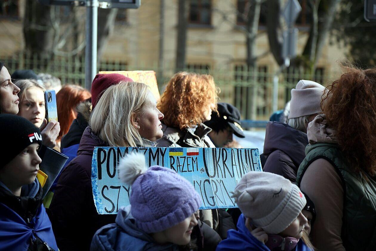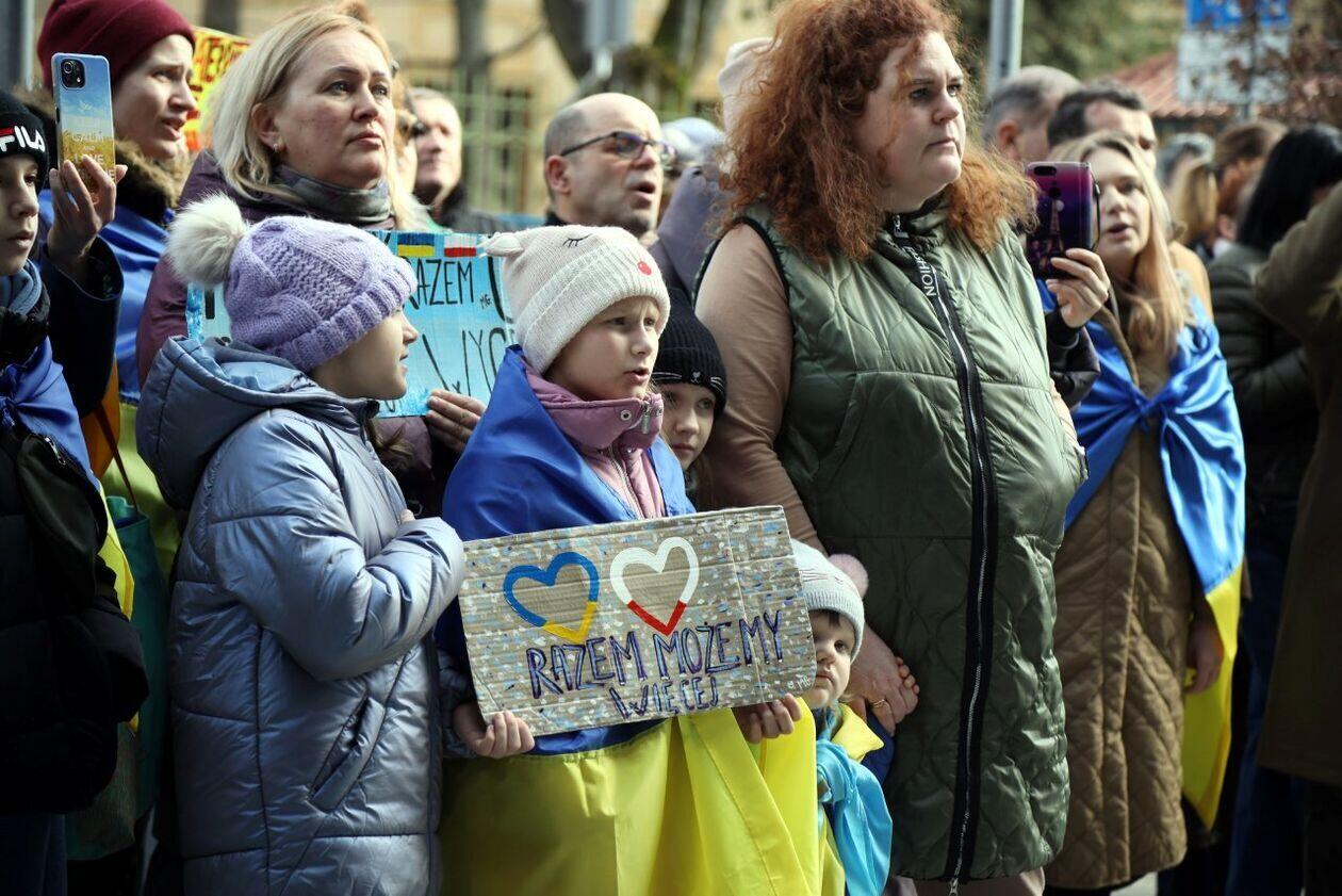Podniesienie flag Polski i Ukrainy przed Konsulatem Ukrainy w Lublinie