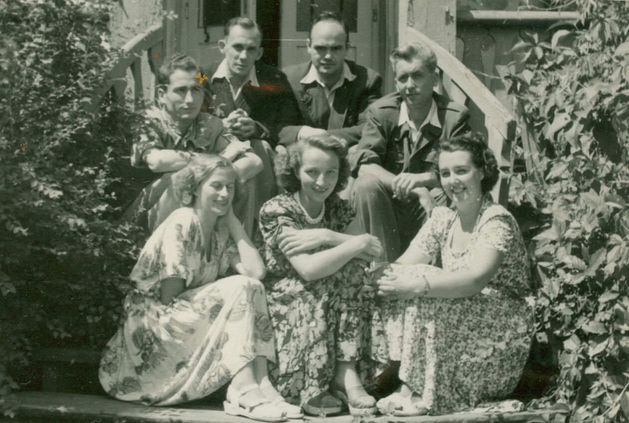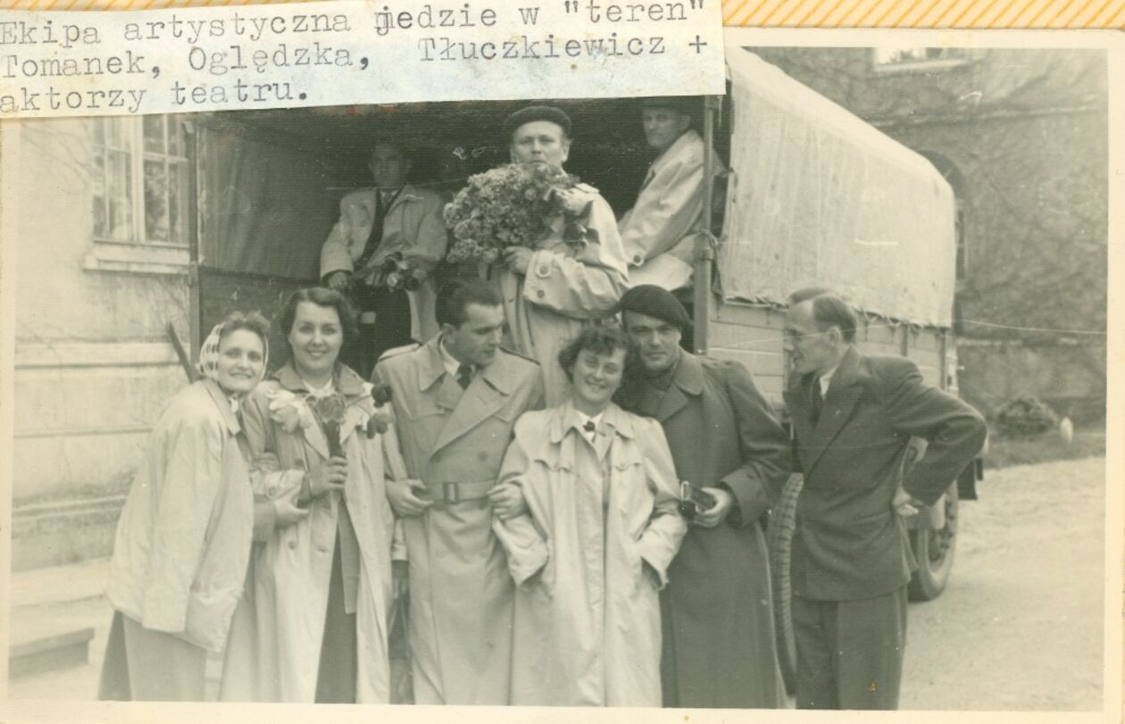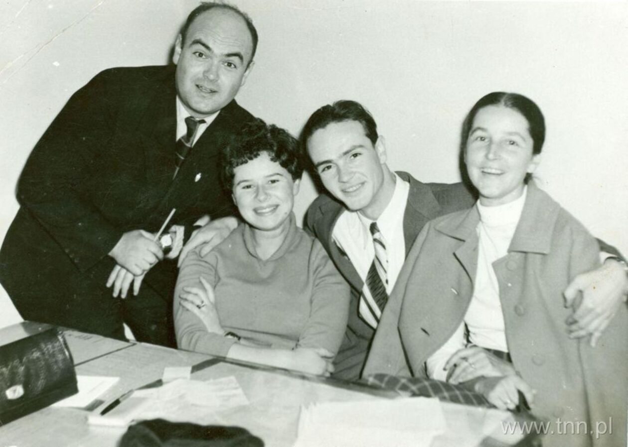 Pracownicy Polskiego Radia w Lublinie. W górnym rzędzie drugi od prawej Adam Tomanek. W dolnym rzędzie, od prawej Helena Oględzka