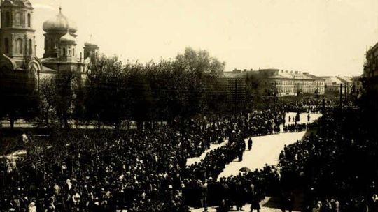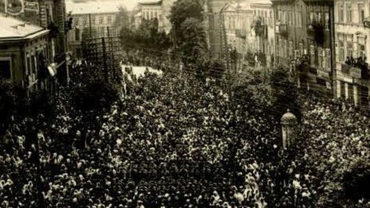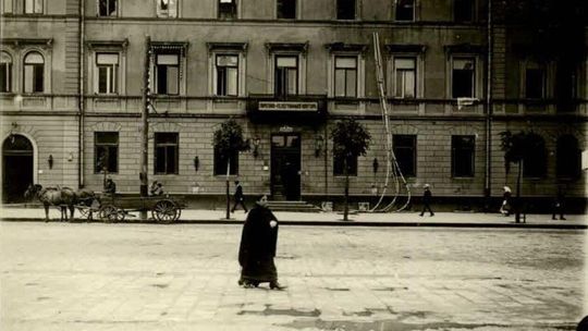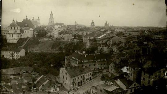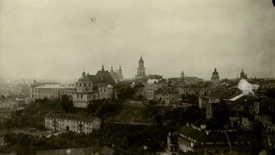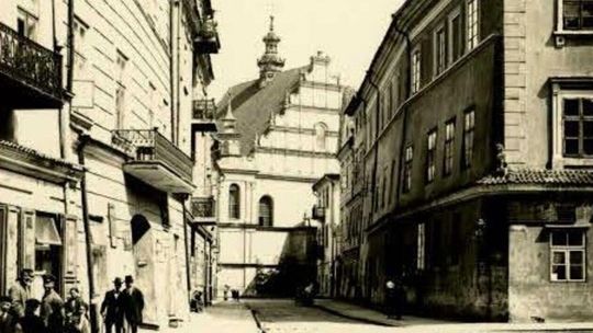 Widok od strony Dolnej Panny Marii w kierunku ulicy Bernardyńskiej w Lublinie. W oddali widać Klasztor Bernardynów i Wyższą Szkołę Handlową