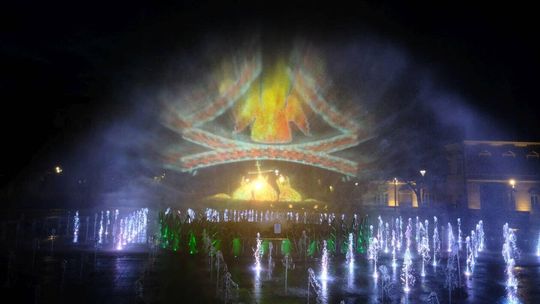 Fontanna multimedialna próbne pokazy po zimowej bezczynności...