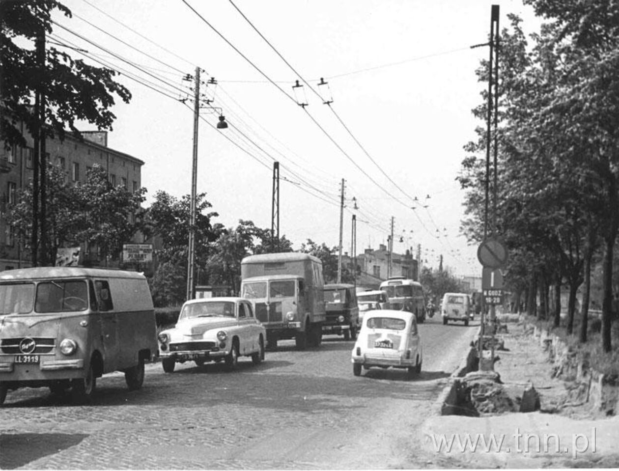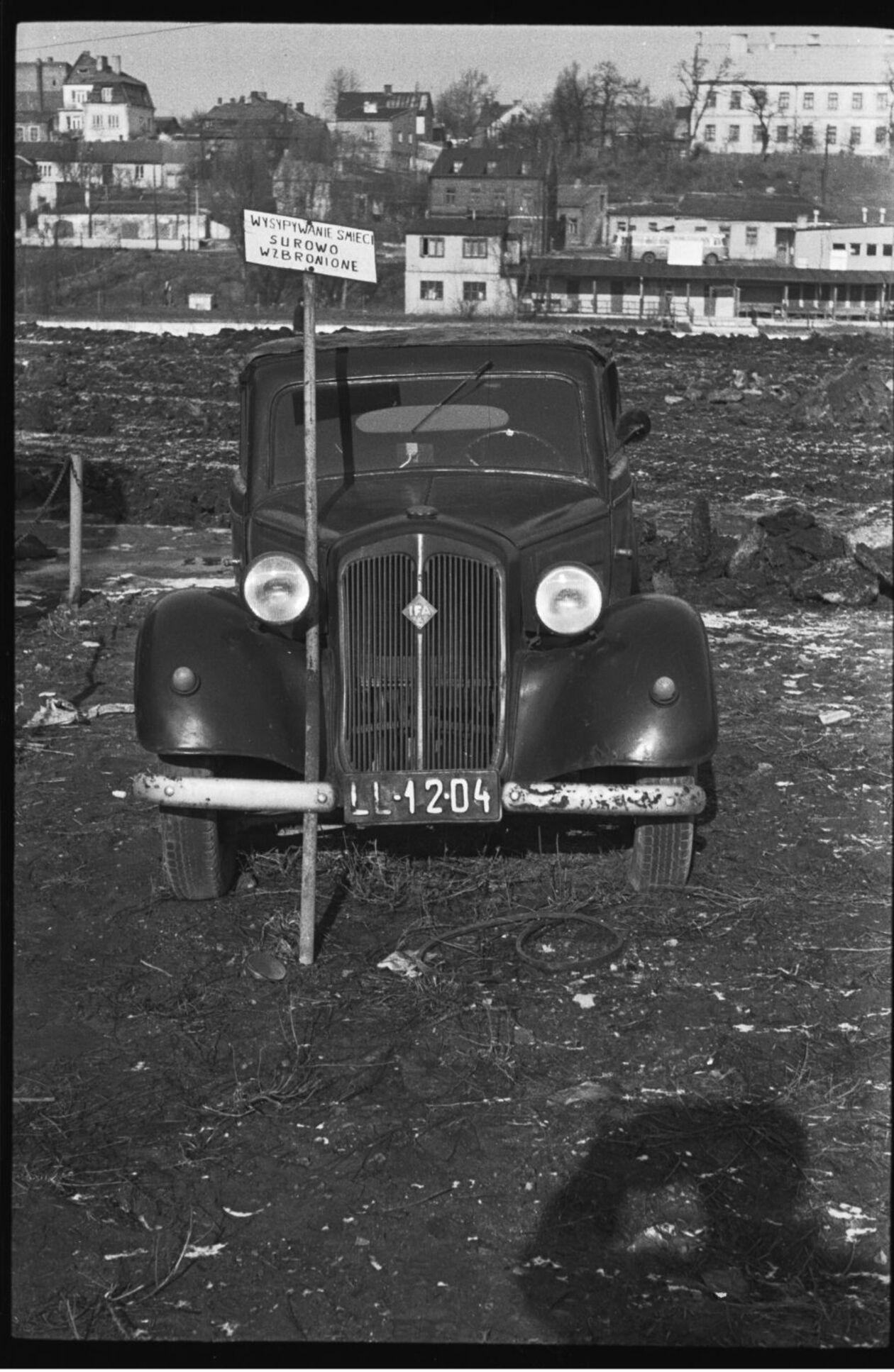 Samochód na terenie współczesnej alei Solidarności. Rok 1946. Teatr NN.