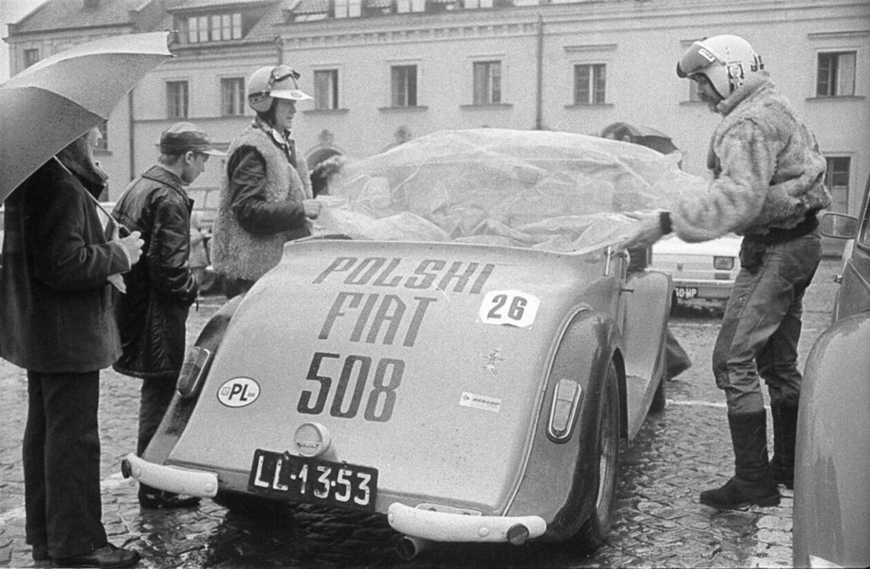 Polski Fiat 508 na Rynku w Kazimierzu Dolnym. Lata 70. Fot. Jacek Mirosław.