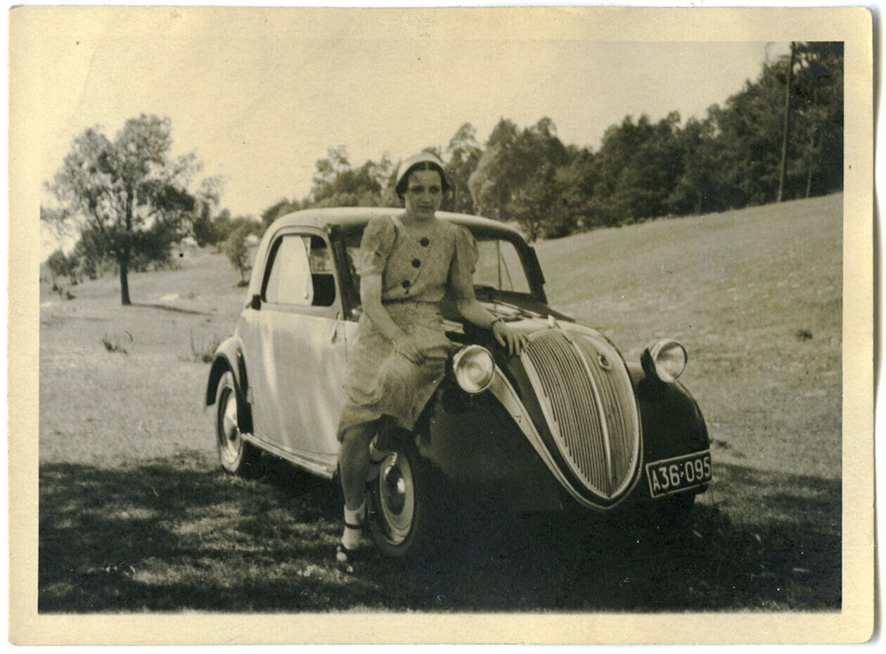 Kobieta przy samochodzie. Lata 30-te. Teatr NN.