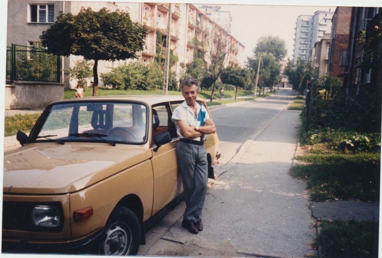 Jan Welik przy swoim Wartburgu w Lublinie. Teatr NN.