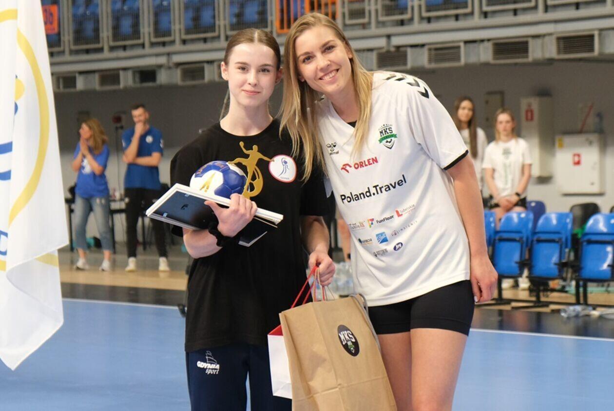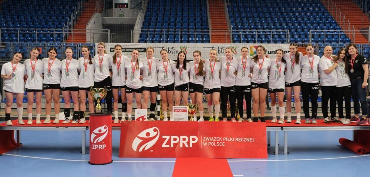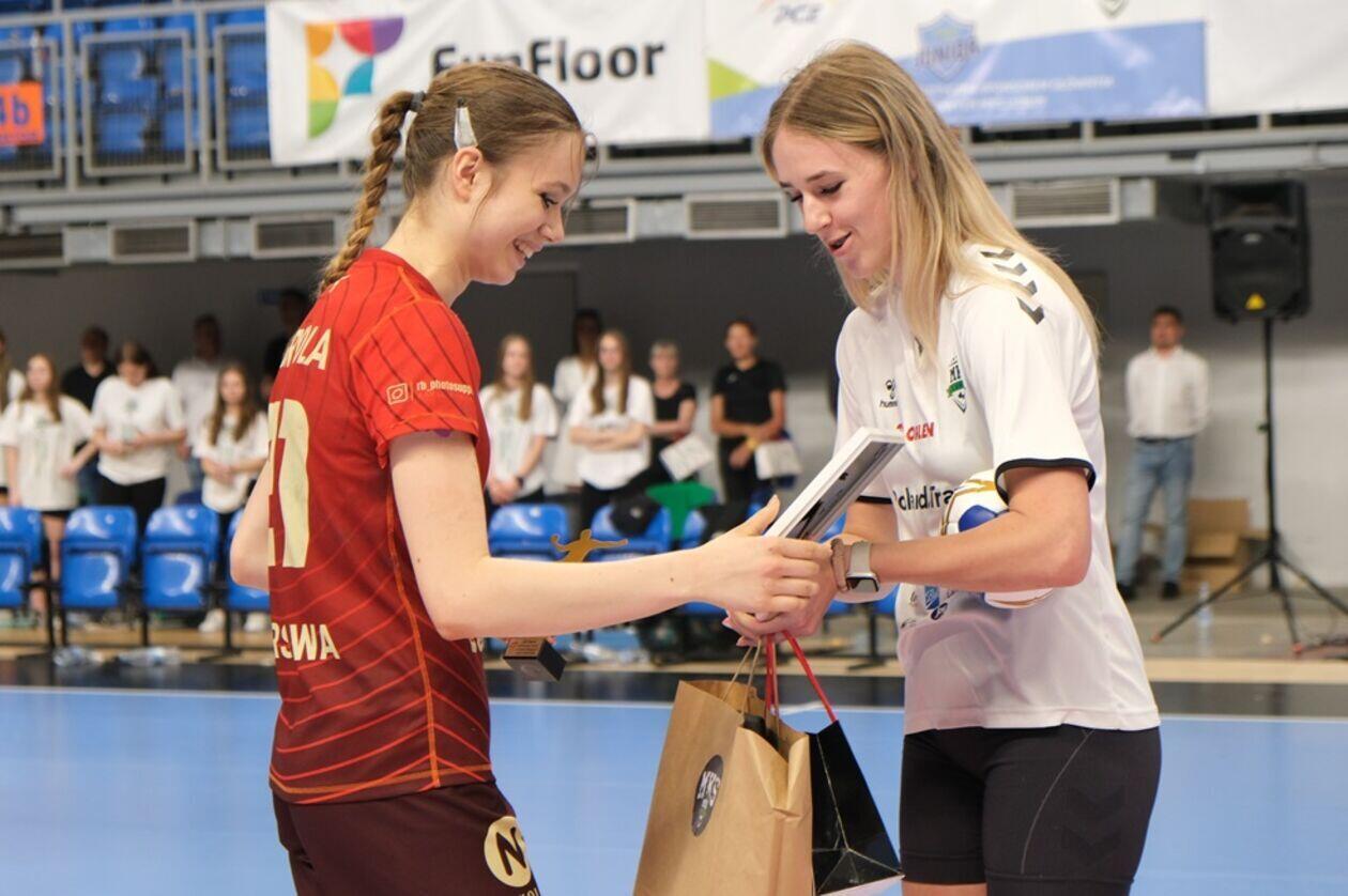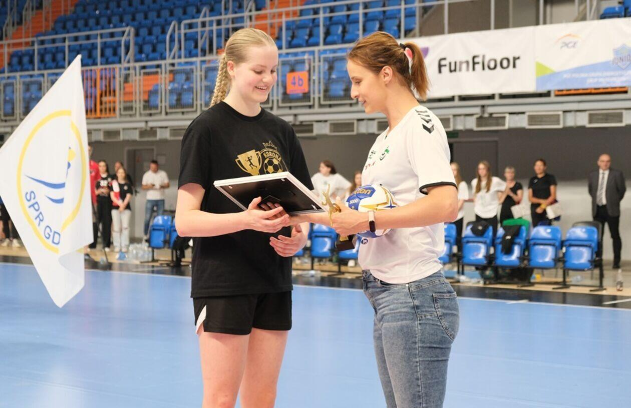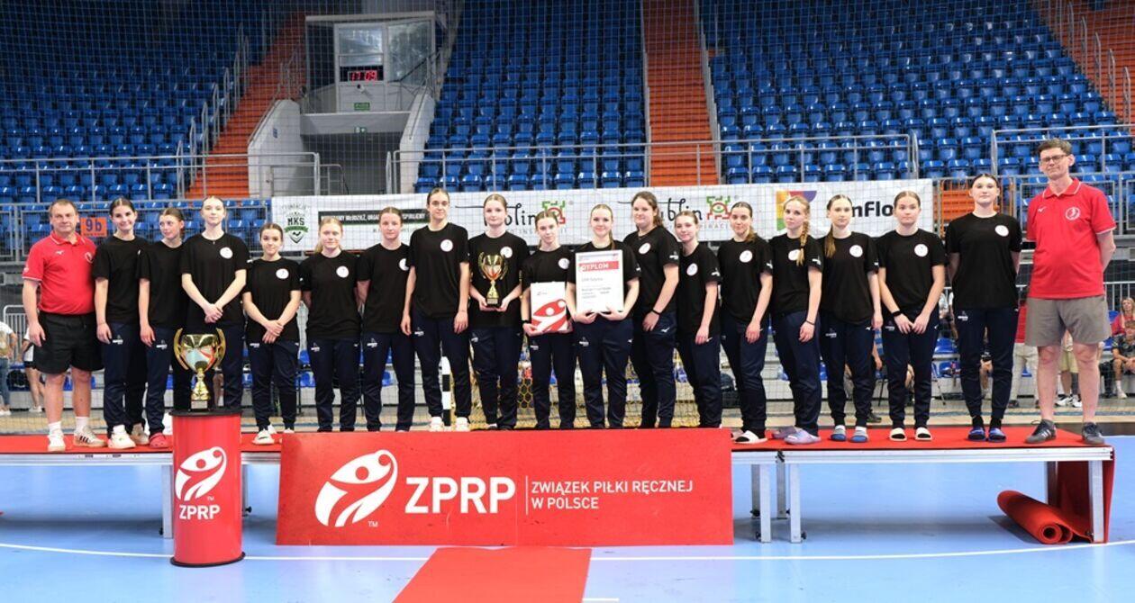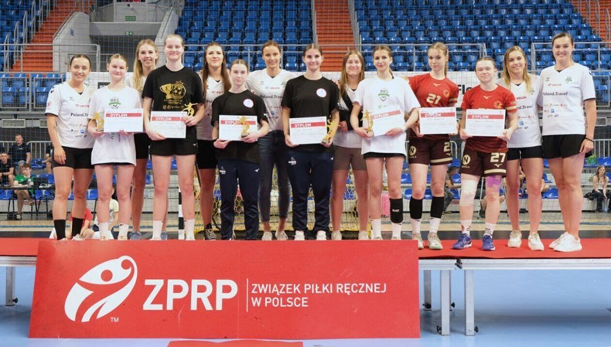 Dekoracja najlepszych zespołów i zawodniczek Mistrzostw Polski Juniorek Młodszych w piłce ręcznej