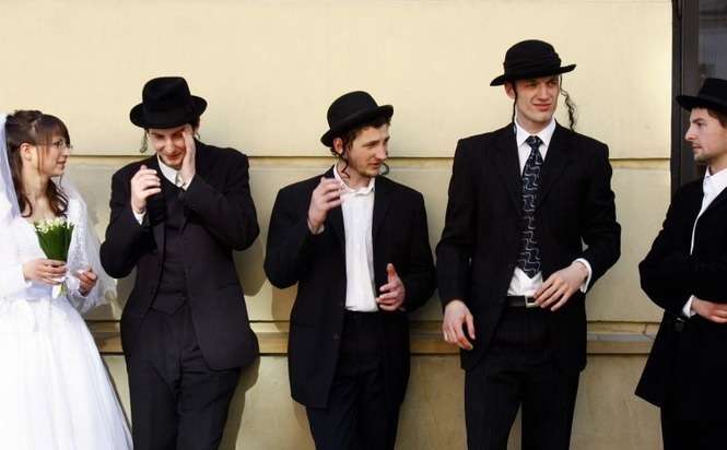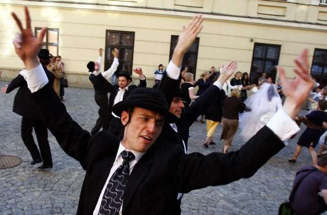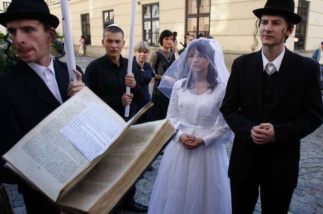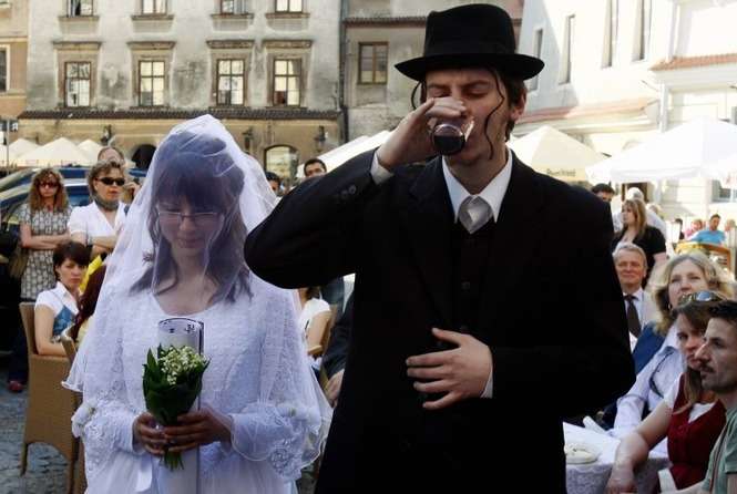 Na Rynku Starego Miasta mozna bylo zobaczyc jak wygląda zydowski ślub i wziąśc w nim udzial