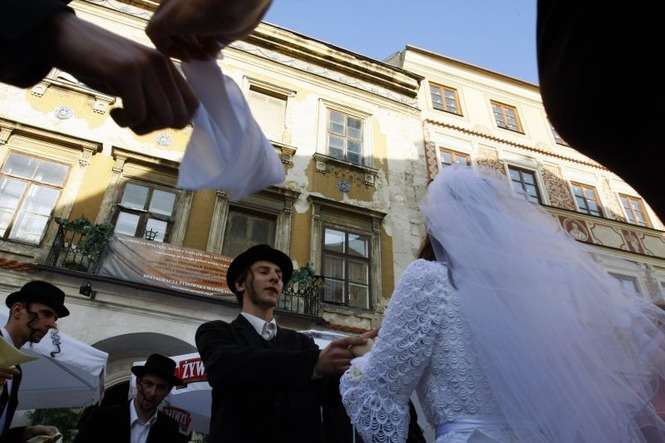 Na Rynku Starego Miasta można było zobaczyć jak wygląda żydowski ślub i wziąć w nim udział. Fot. Dorota Awiorko