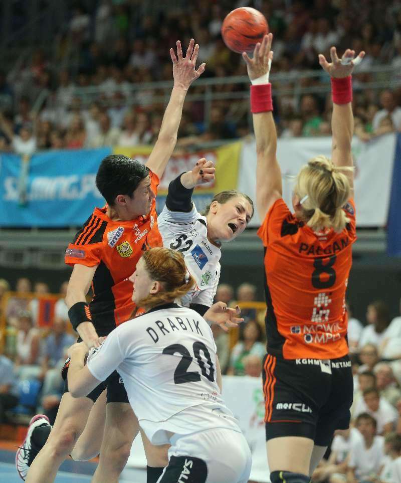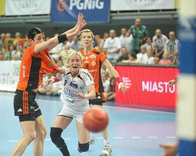Zawodniczki MKS Selgros Lublin zdobyły mistrzostwo Polski piłkarek ręcznych. Ostatnią bitwę w walce o złote medale piłkarki ręczne z Lublina rozegrały w hali Globus. Pokonały KGHM Metraco Zagłębie Lubin 26:22. Fot. Maciej Kaczanowski