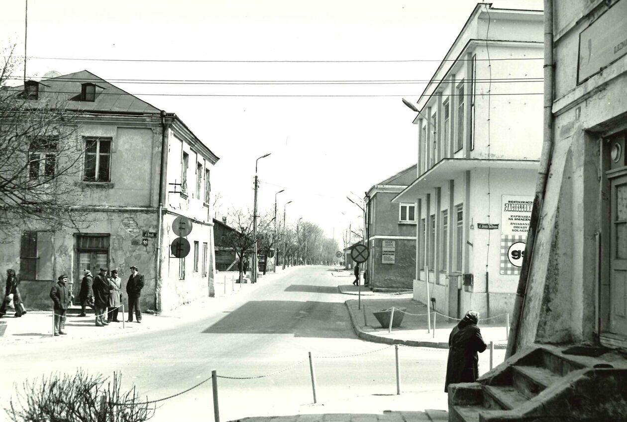 ul. Dwudziestolecia PRL, obecnie Biskupa Wilczyńskiego, widok od wschodu na skrzyżowanie z ul. Krakowską.