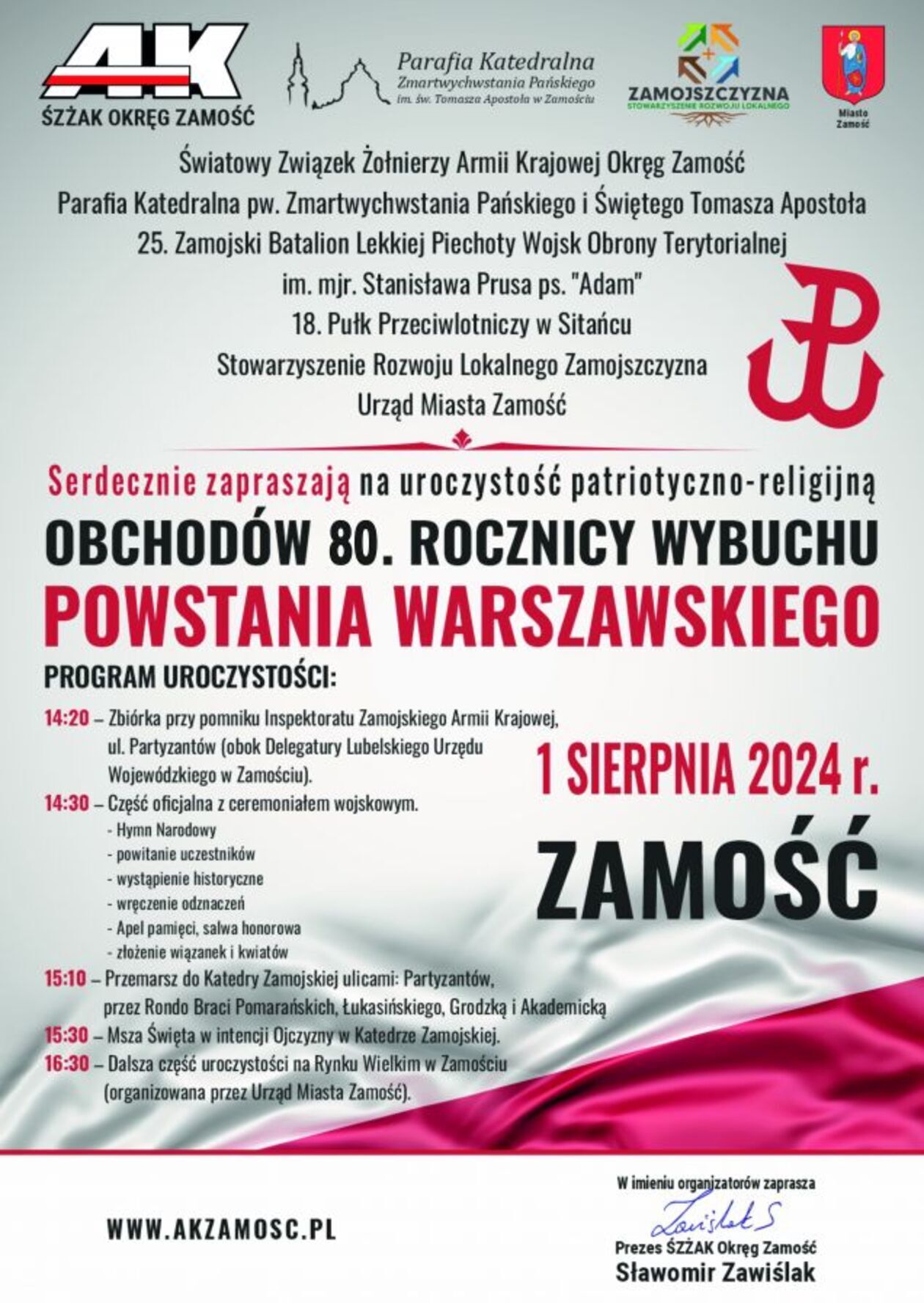 Zamość w 80. rocznicę wybuchu Powstania Warszawskiego - program uroczystości