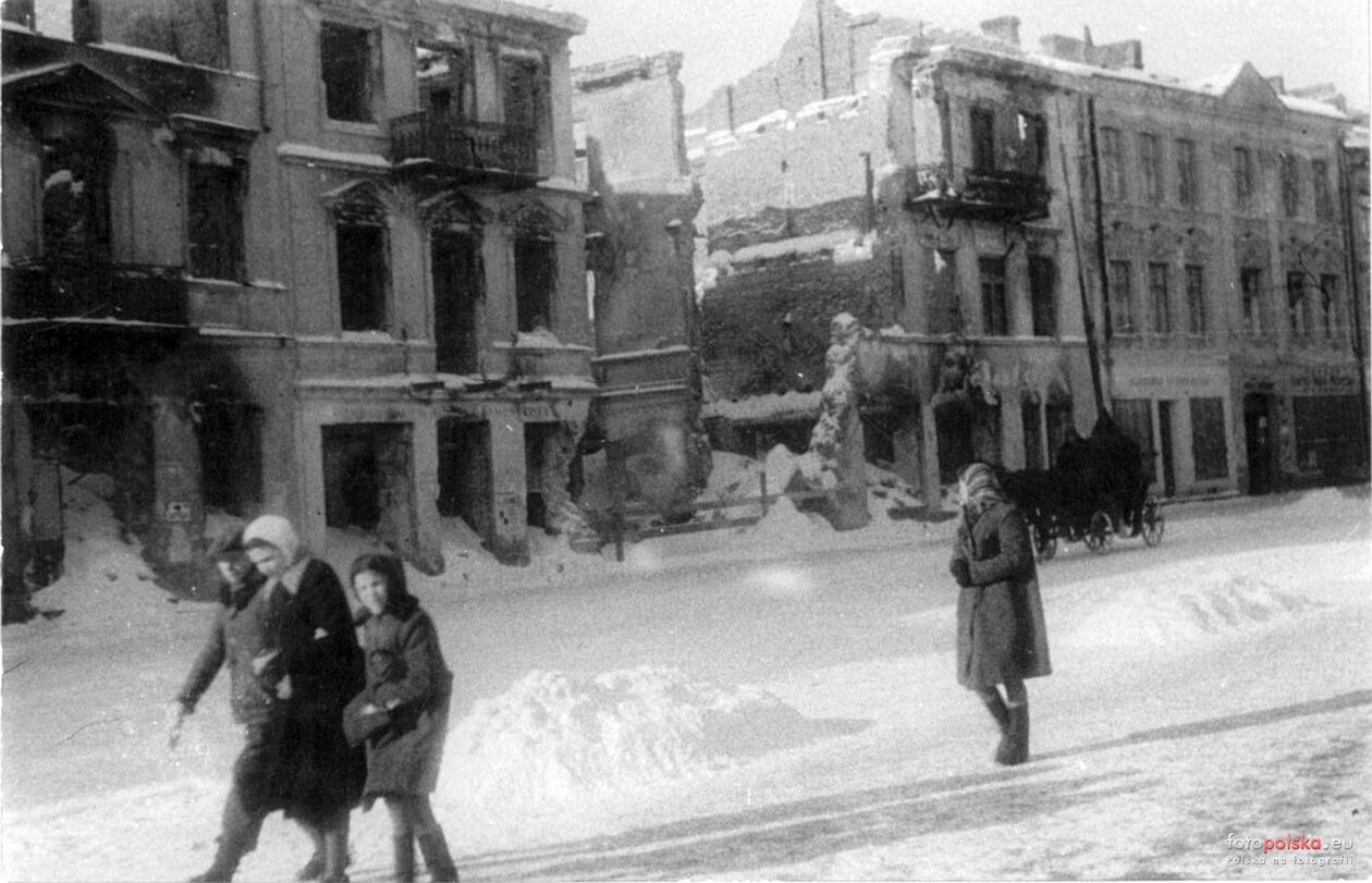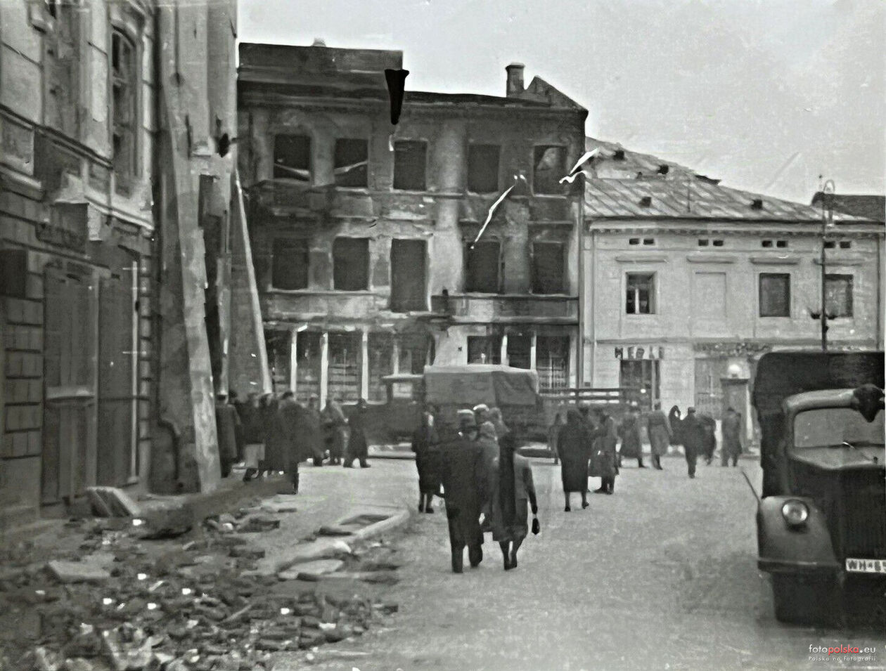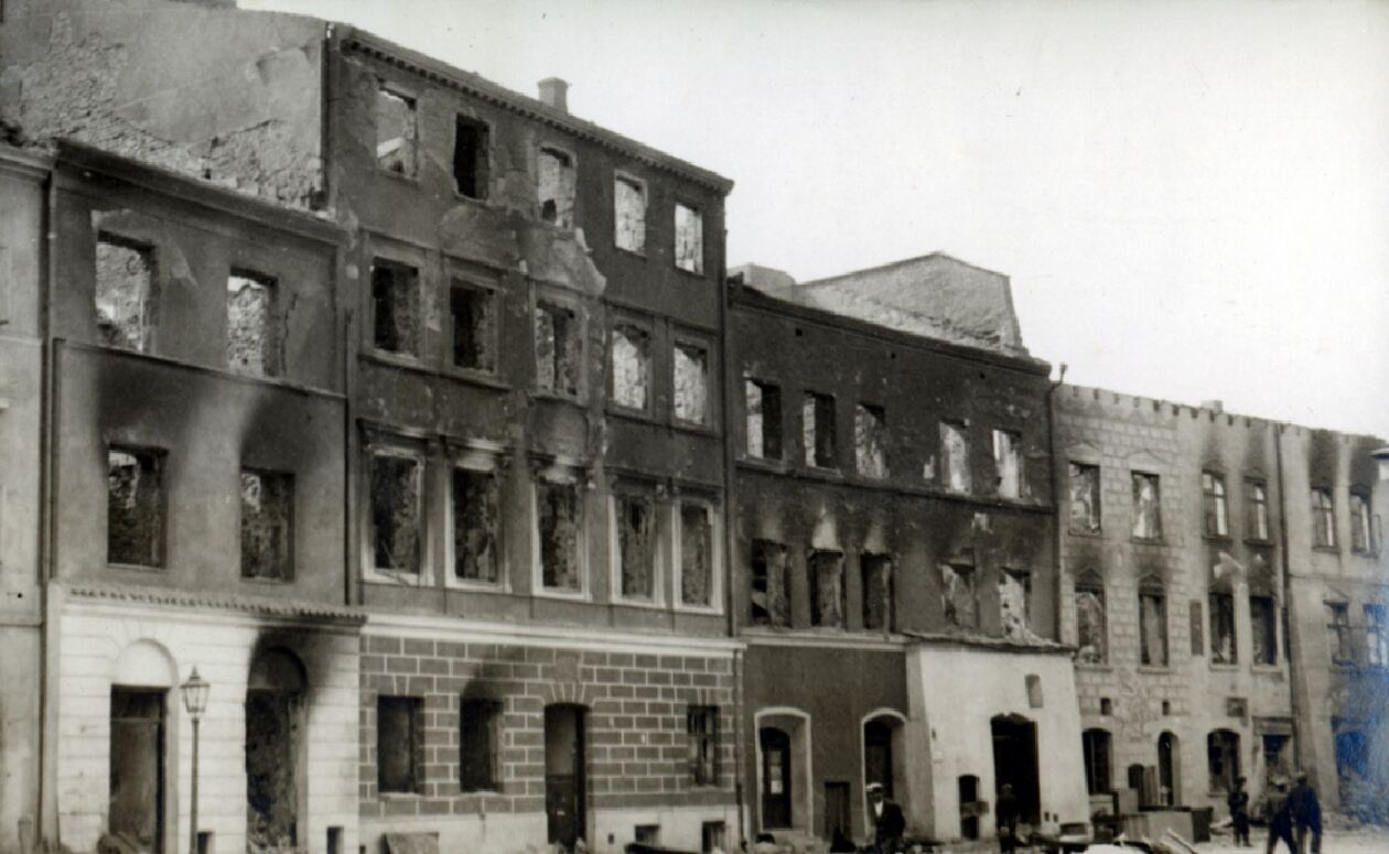 Zniszczone kamienice przy placu Łokietka.