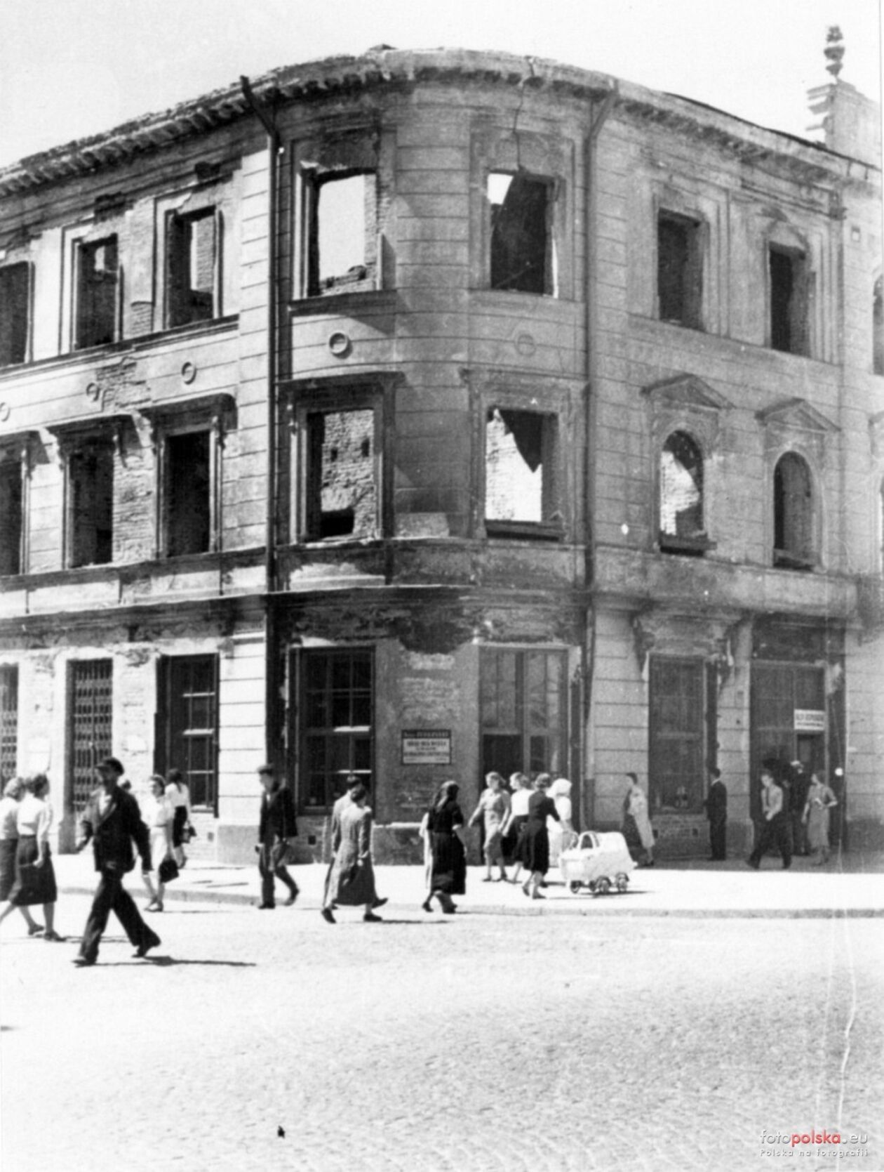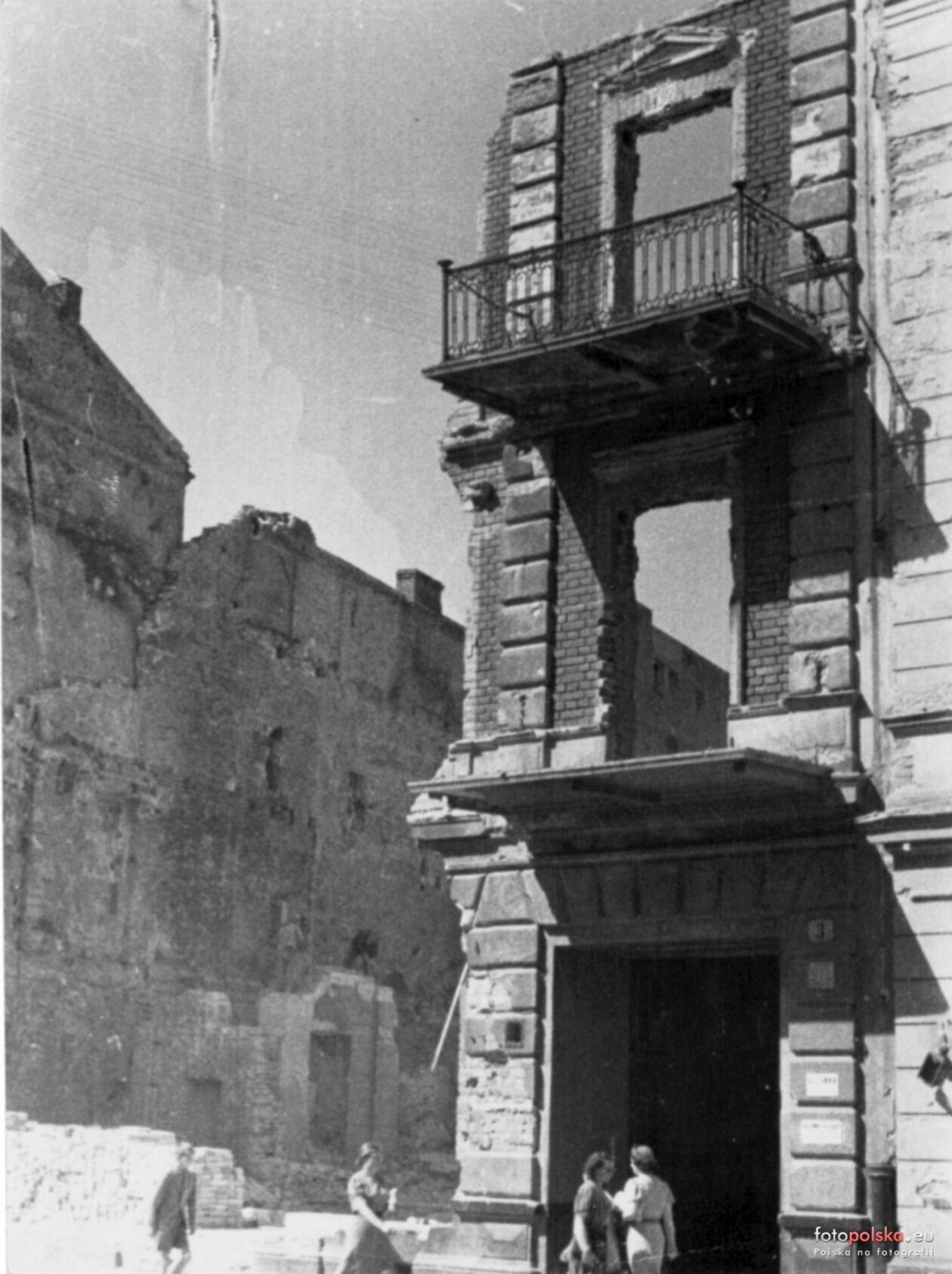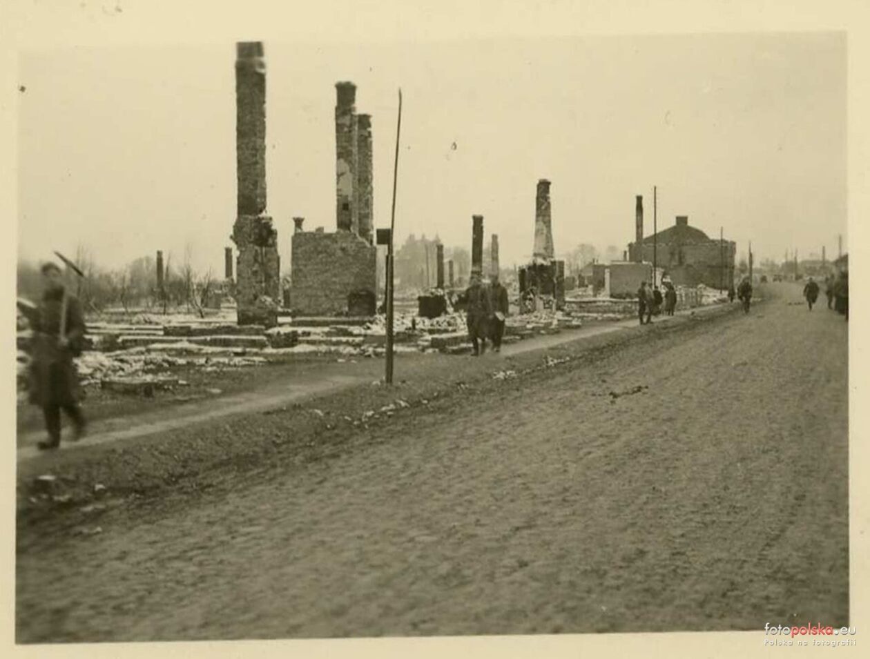 Zniszczone kamienice przy placu Łokietka.