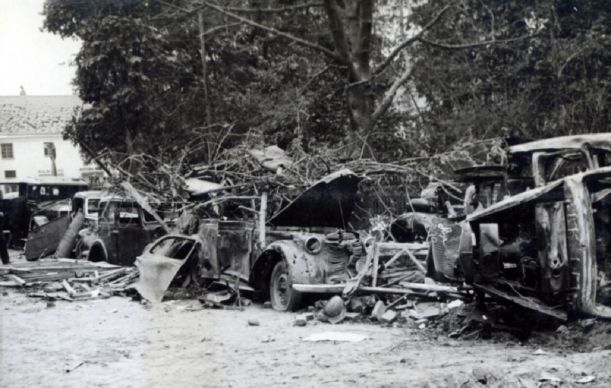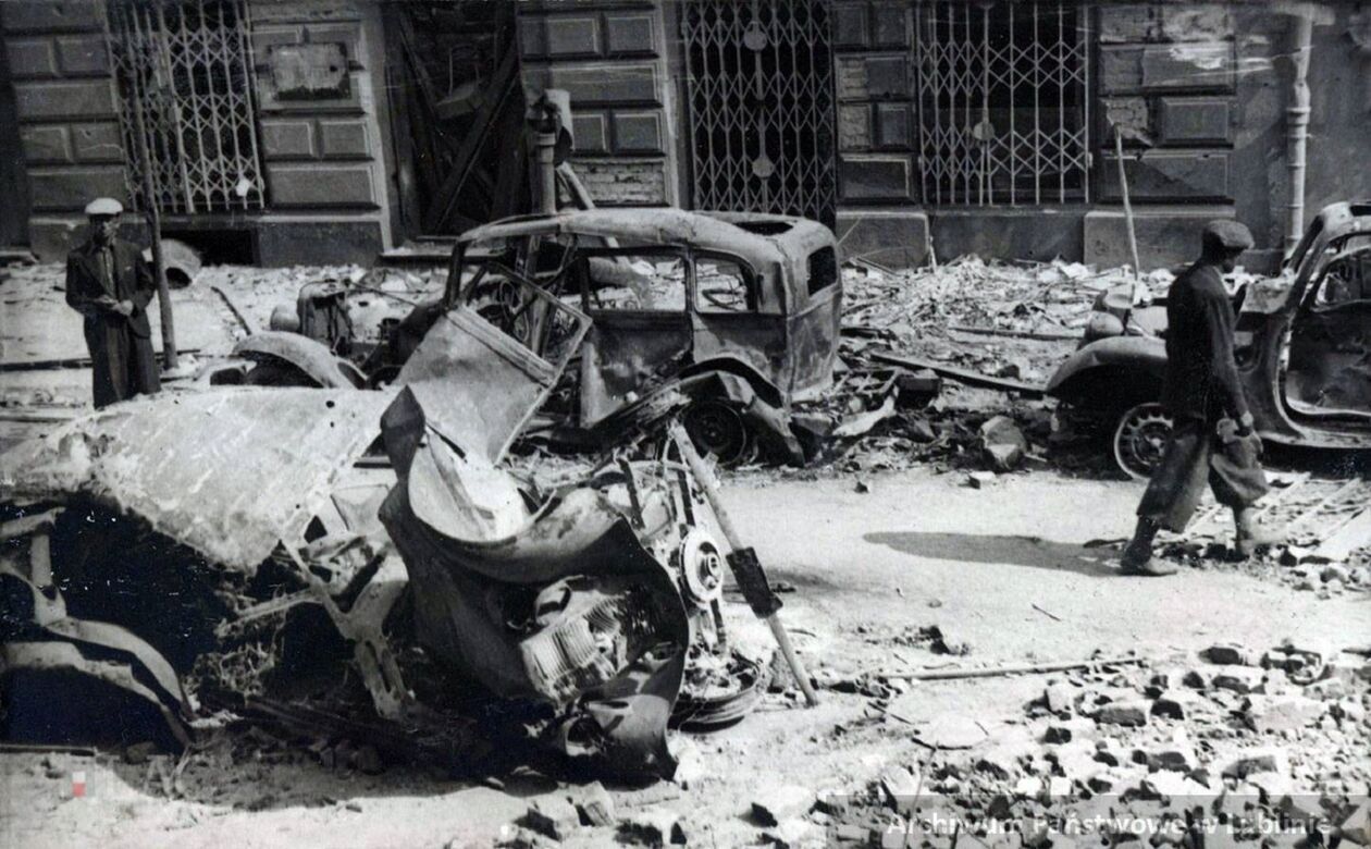 Zniszczone auta na placu Litewskim.