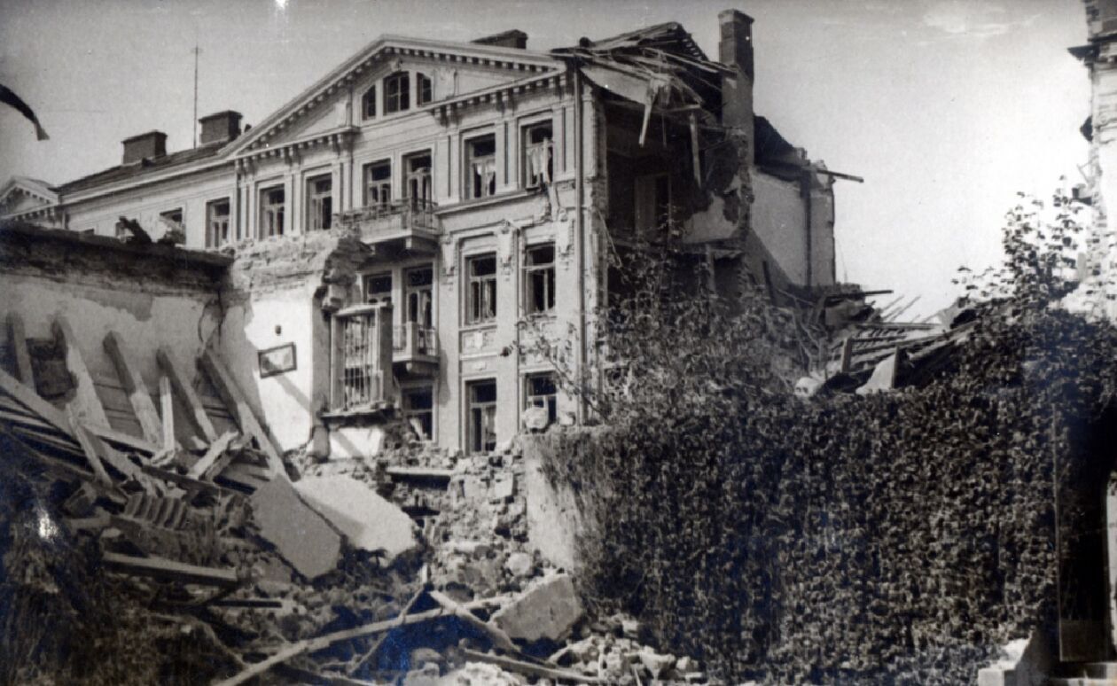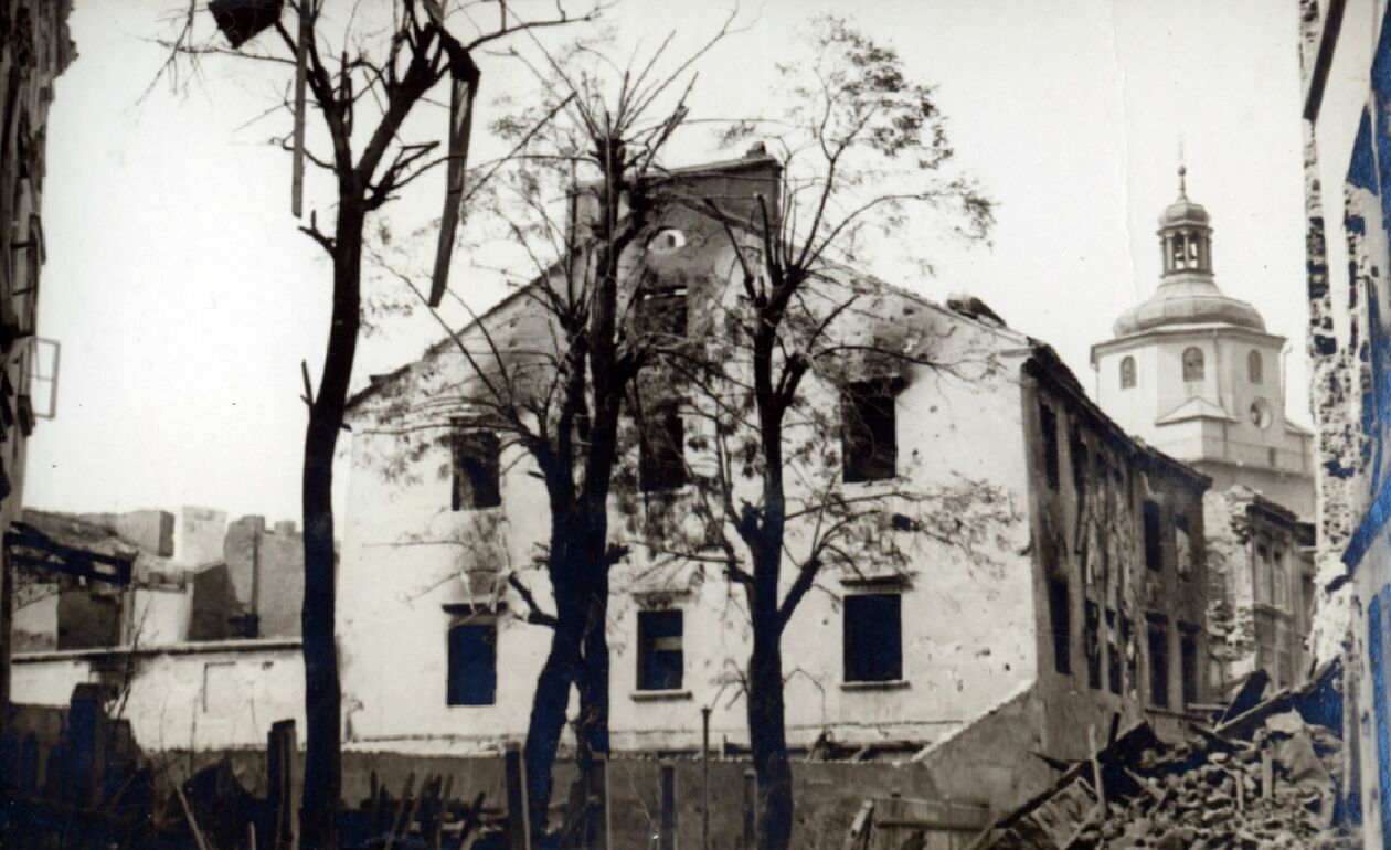 Ruiny ratusza po bombardowaniu.