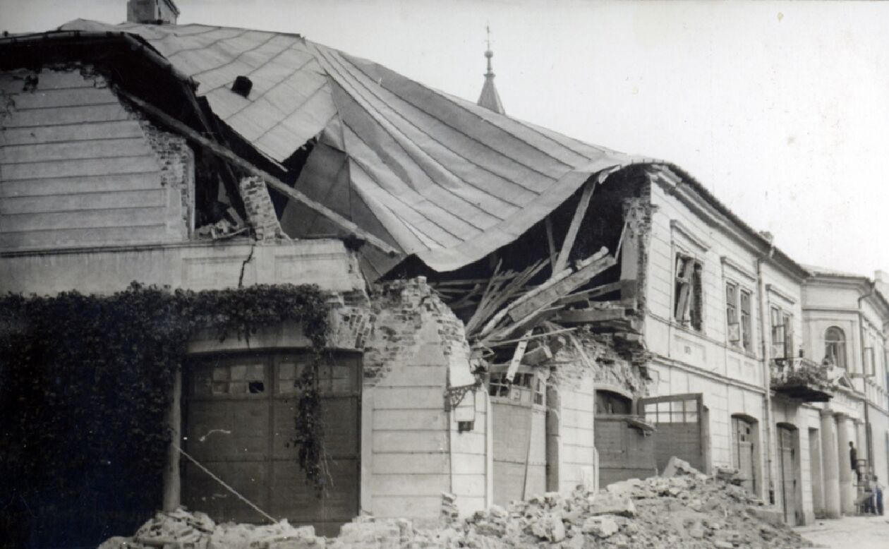 Zniszczona siedziba Miejskiej Straży Ogniowej.