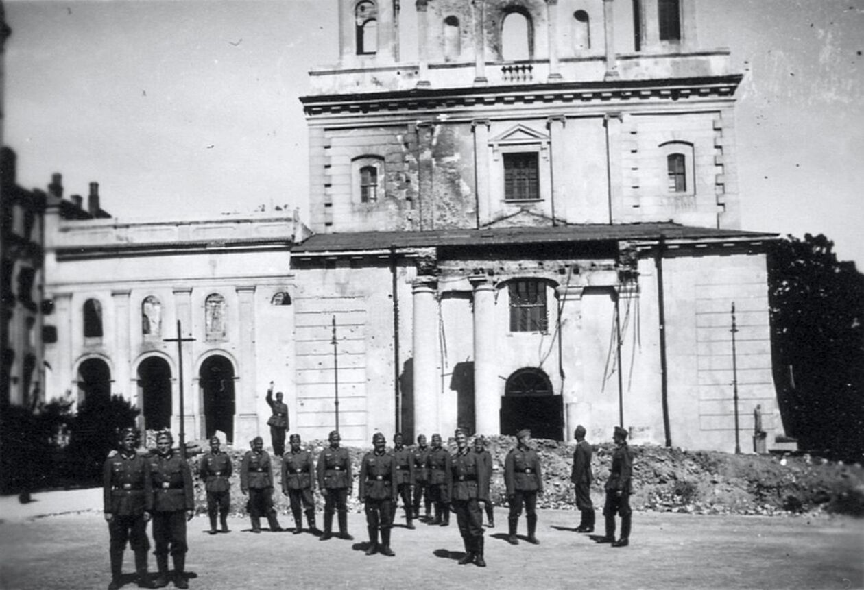 Bazylika św. Jana Chrzciciela i św. Jana Ewangelisty, tuż po zajęciu miasta przez wojska niemieckie.