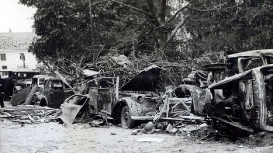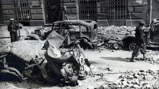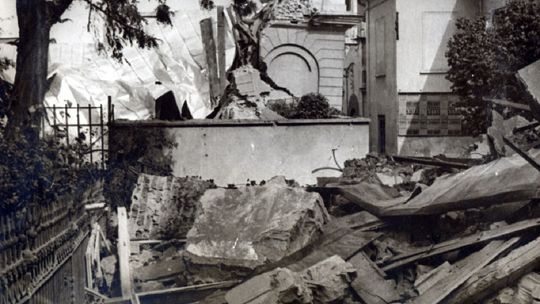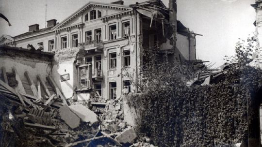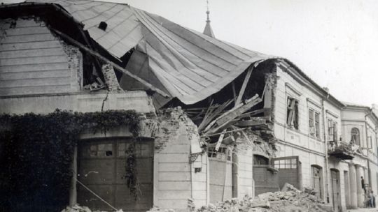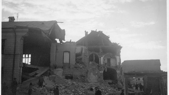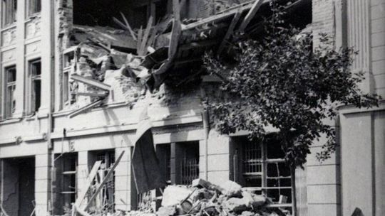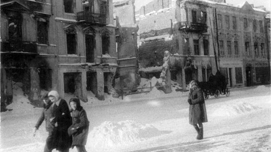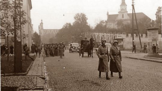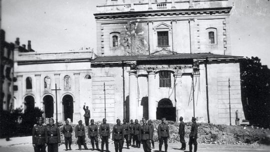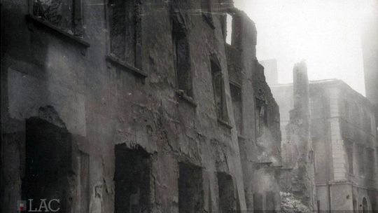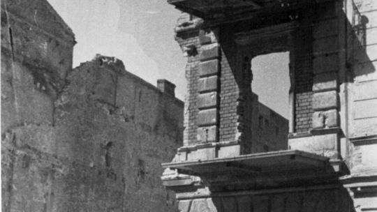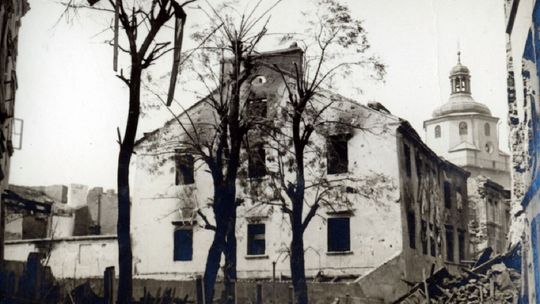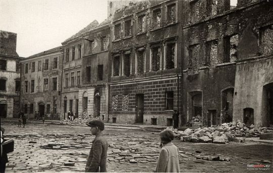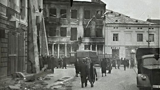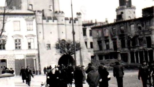 Zniszczone kamienice na rynku lubelskiej starówki.