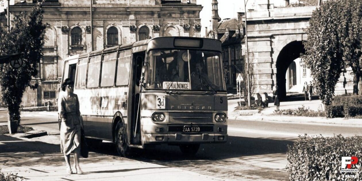Przystanek MPK przy ulicy Partyzantów. Po prawej fragment starej bramy lwowskiej, po środku, w tle klasztor franciszkanów czyli wówczas kino Stylowy.