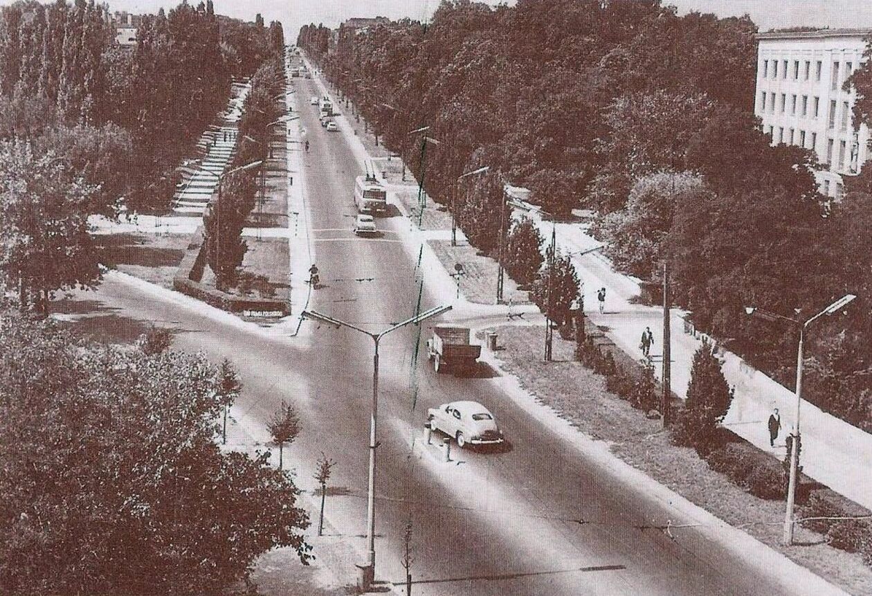 Aleja Racławicka i boczna Radziszewskiego. Budynek po prawej dawny KW PZPR obecnie Uniwersytet Medyczny - Collegium Novum i rektorat.