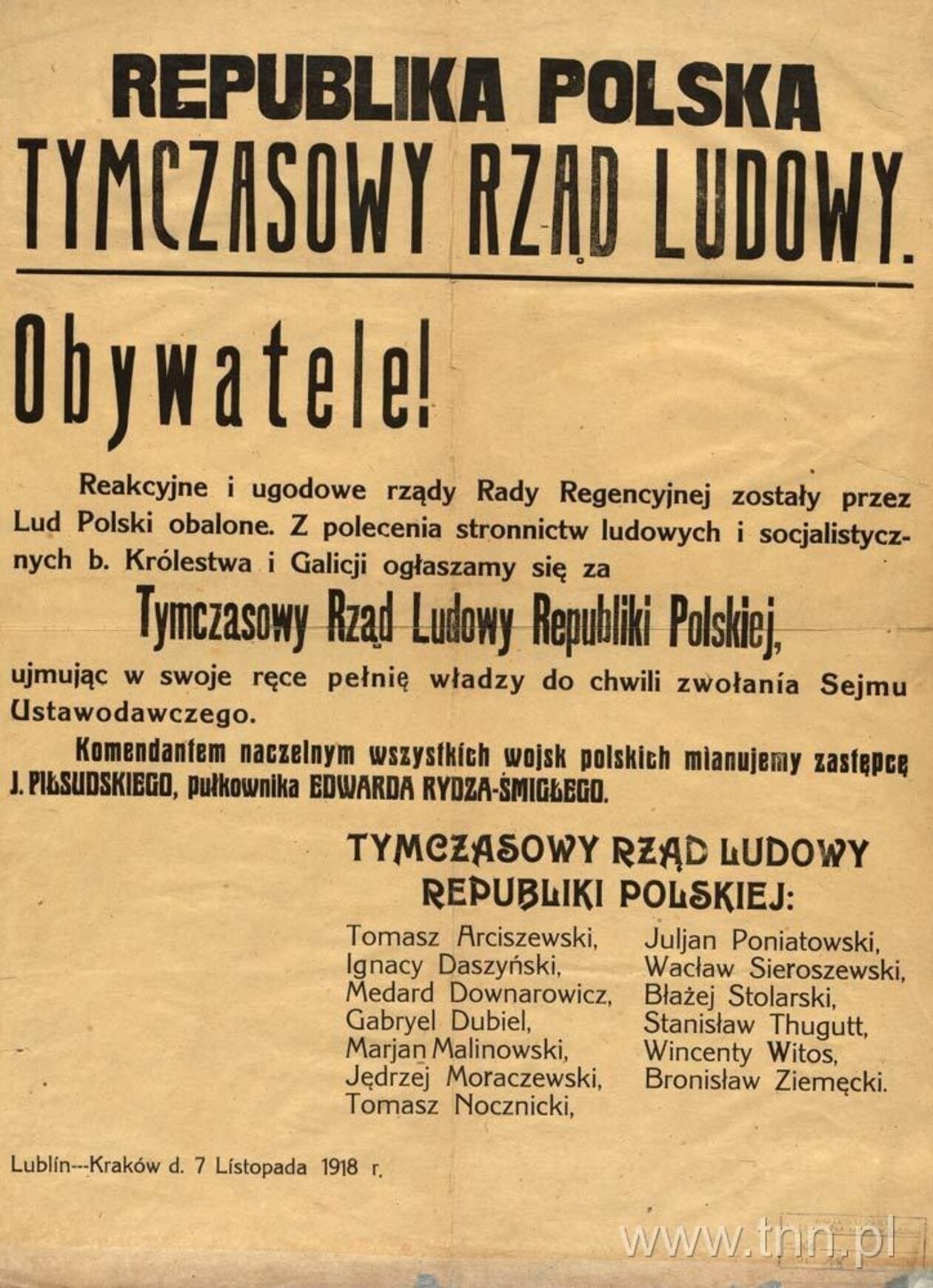 Odezwa Tymczasowego Rządu Ludowego Republiki Polskiej.