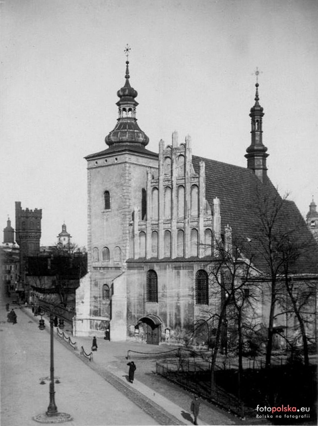 Krakowskie Przedmieście, plac Litewski i na wprost kościół św. Piotra i Pawła i klasztor Kapucynów.