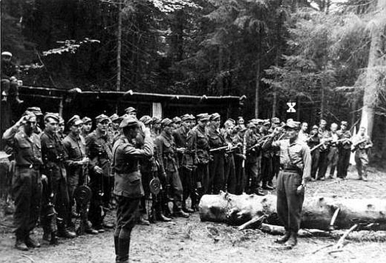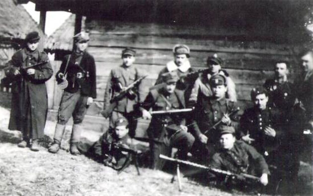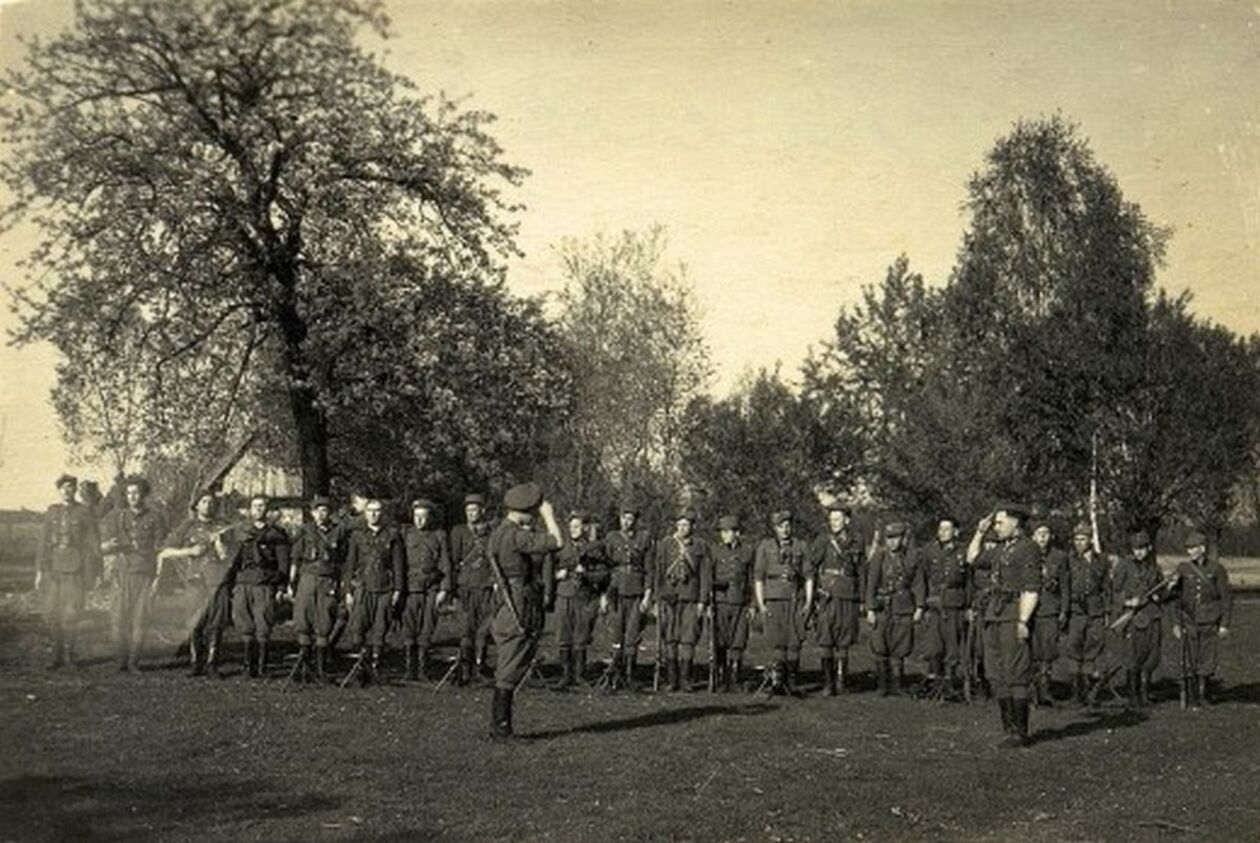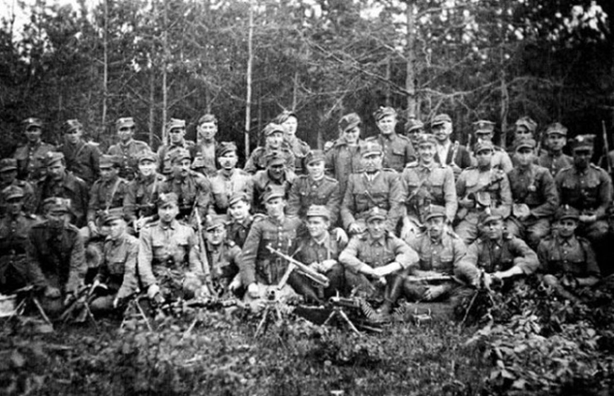 Żołnierze I Brygady Podlaskiej Narodowego Zjednoczenia Wojskowego dowodzonej przez por. Tadeusza Narkiewicza Ciemnego.