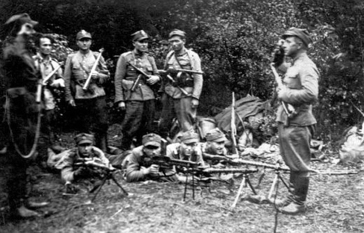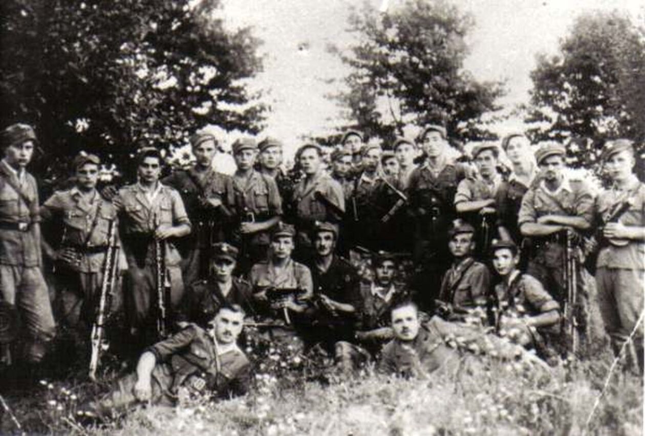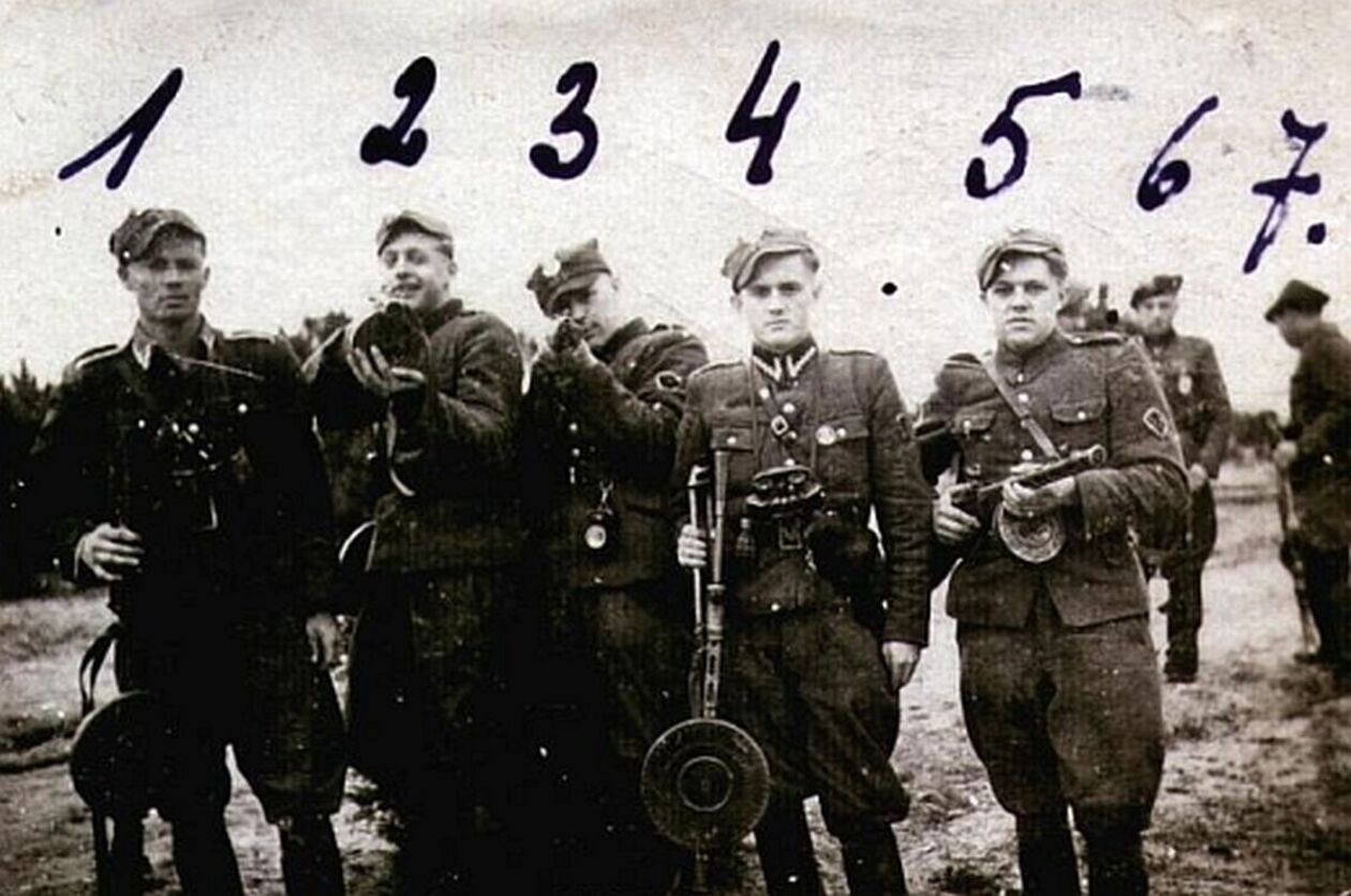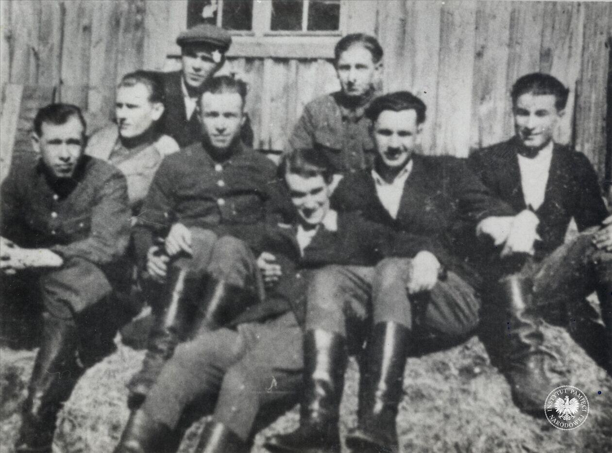 Grupa żołnierzy Polskiej Podziemnej Armii Niepodległościowej, m.in. ks. Władysław Gurgacz ps. Sem oraz Stanisław Pióro ps. Emir, fot. AIPN, sygn. IPNKr-3-3-6-24-1.