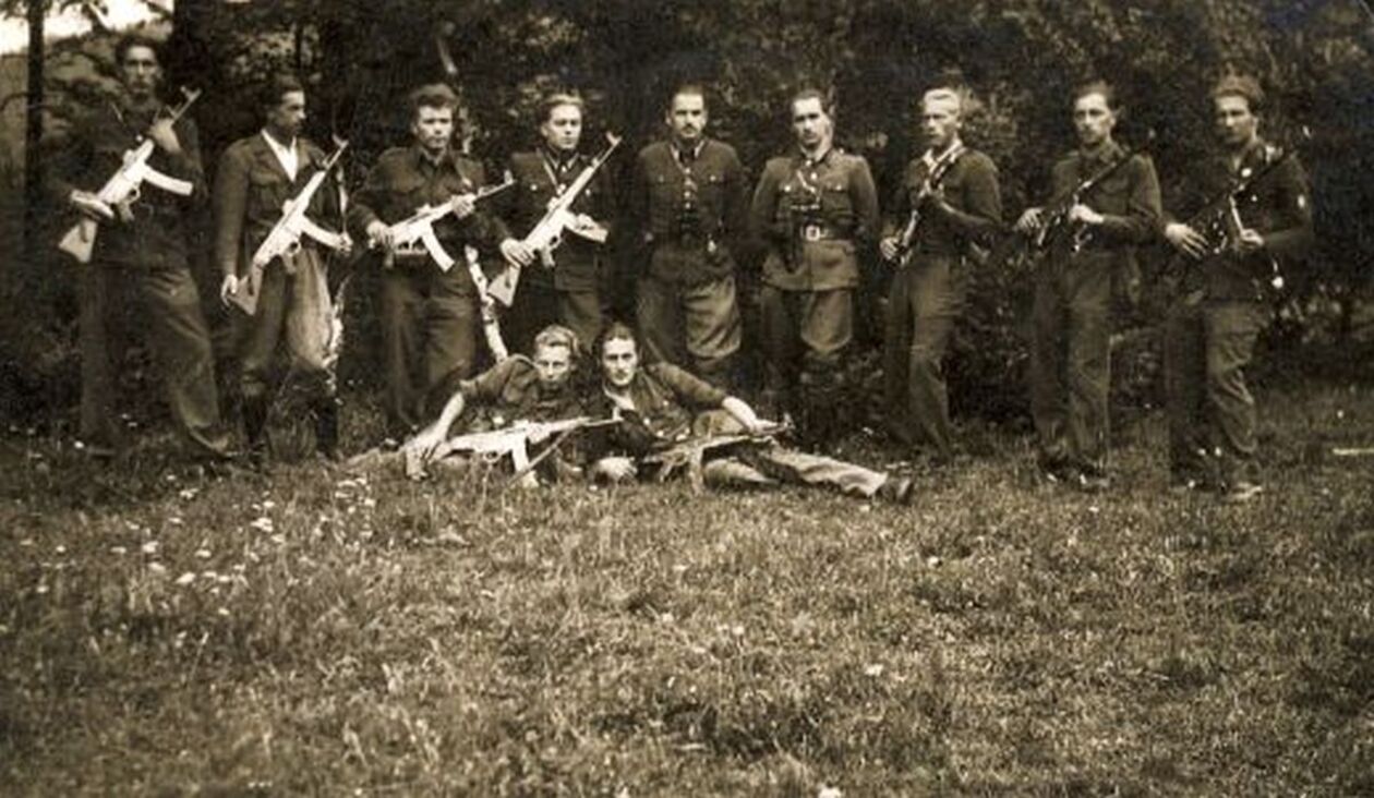 Maj 1945. Żołnierze PAS NSZ Okręgu Lubelskiego z oddziału por. Mieczysława Pazderskiego Szarego.