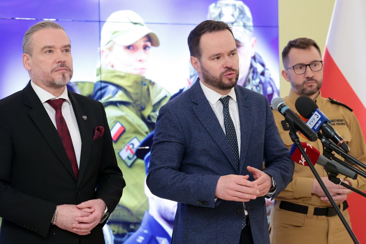 Konferencja prasowa wojewody o służbach mundurowych.