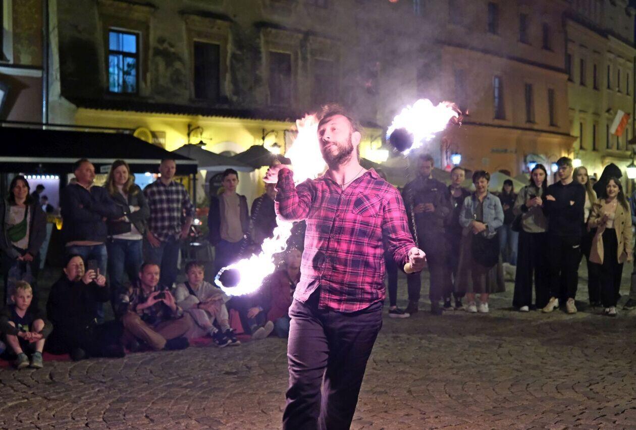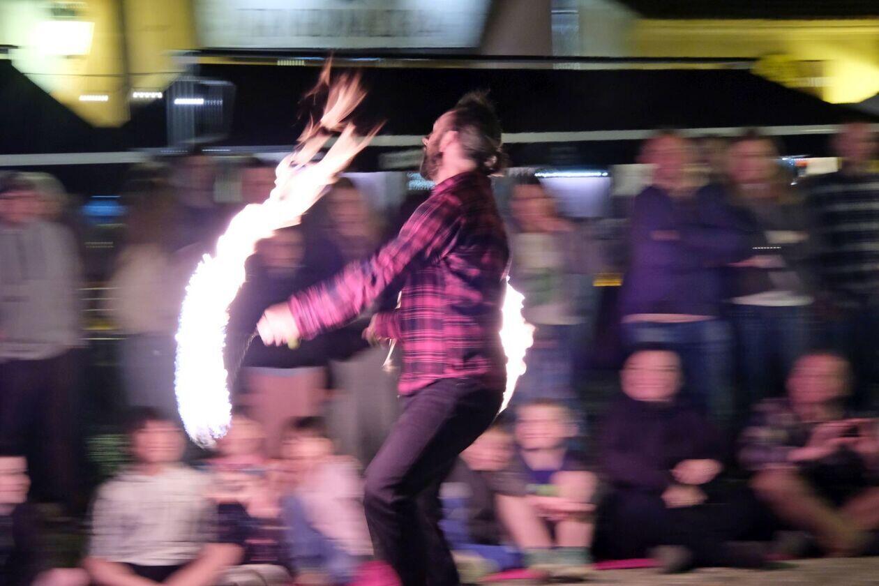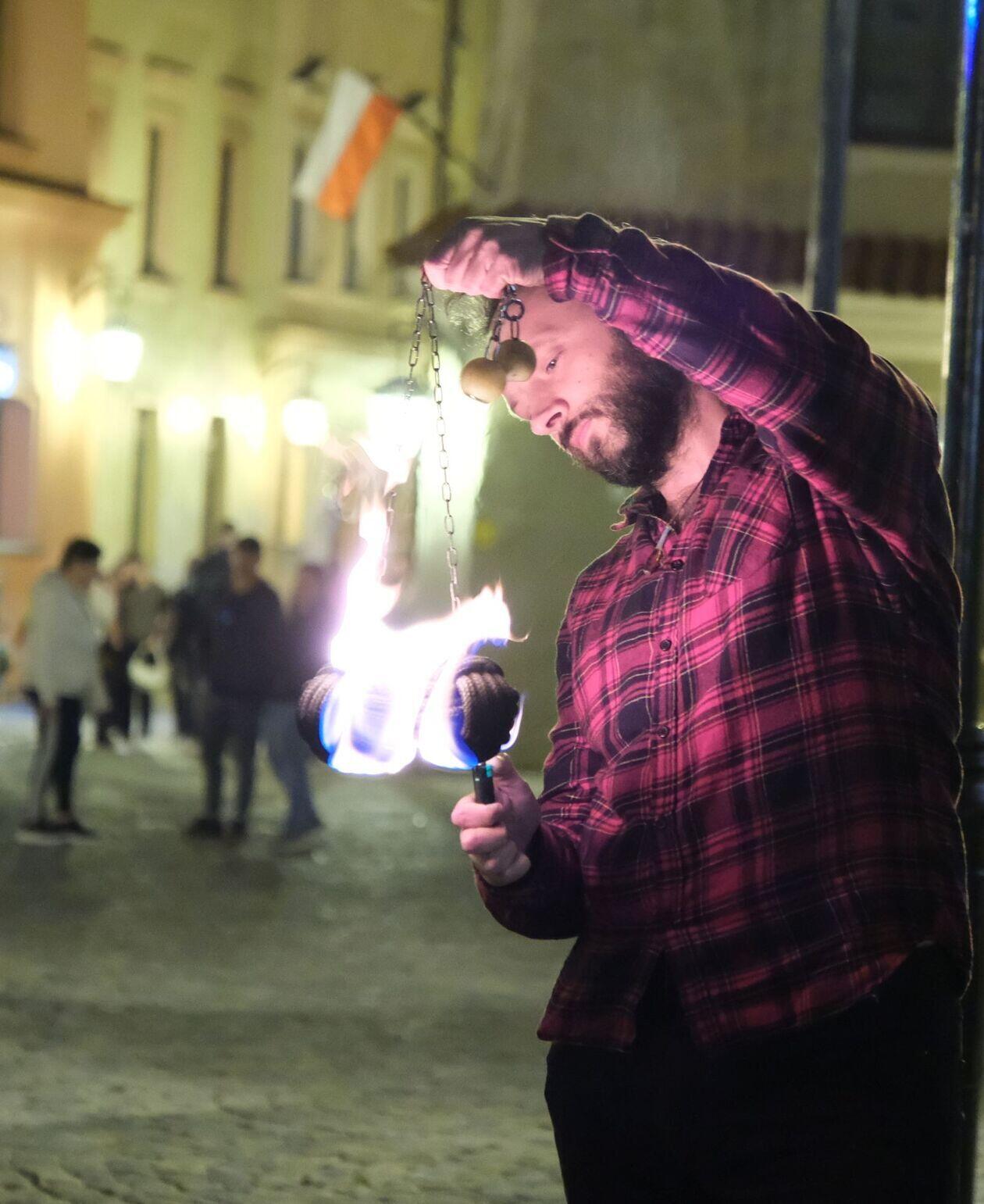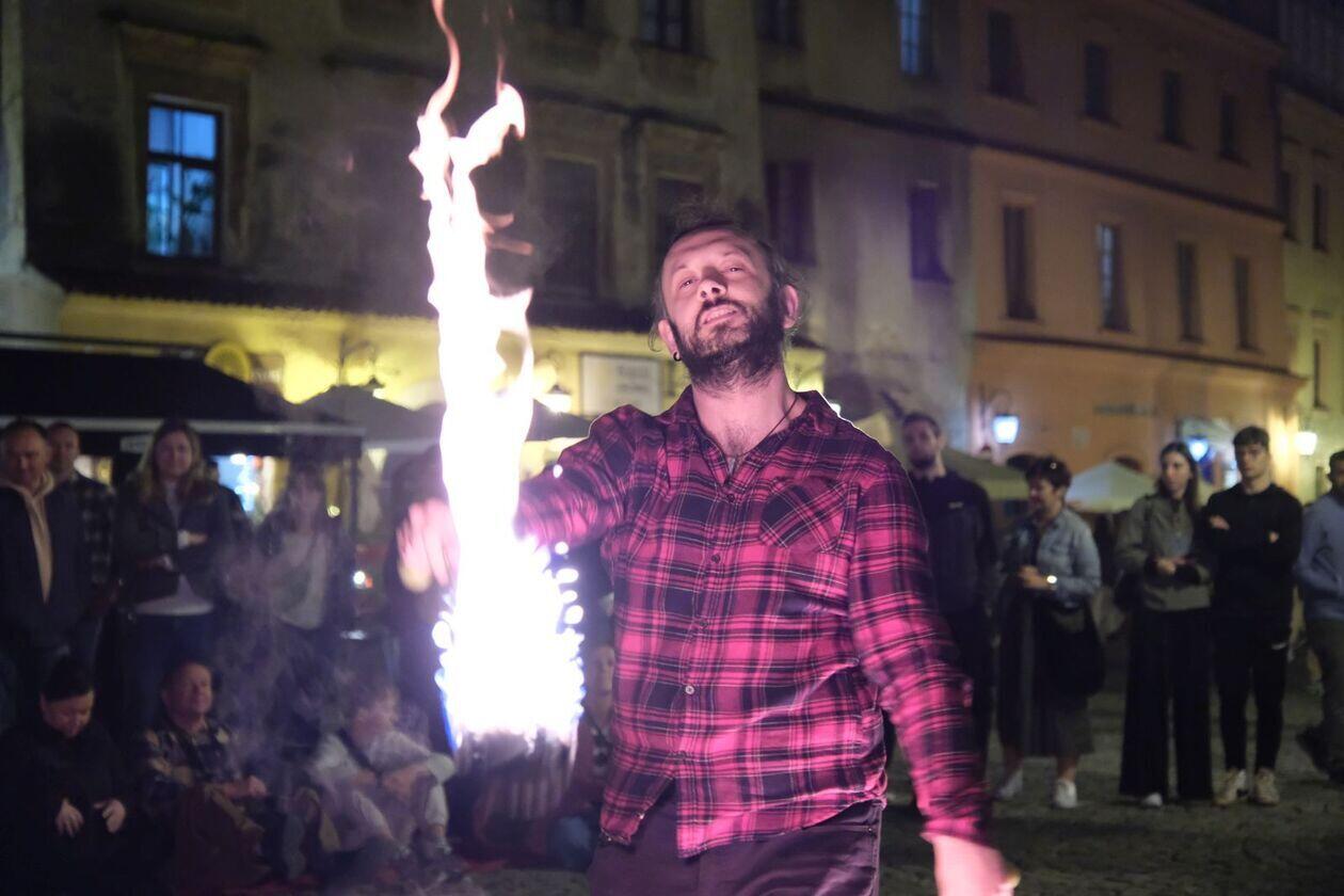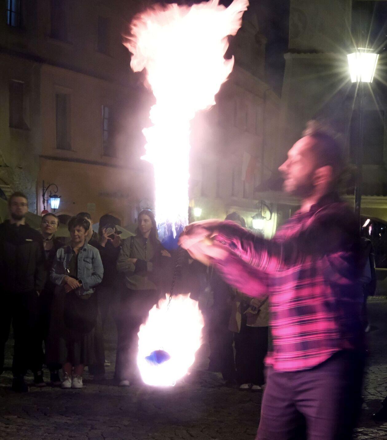 Fire show sztukmistrzów na rozpoczęcie majowego weekendu