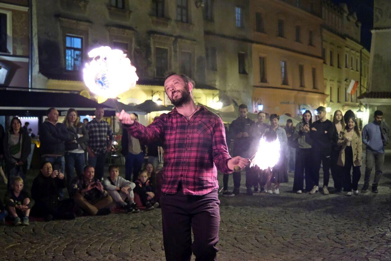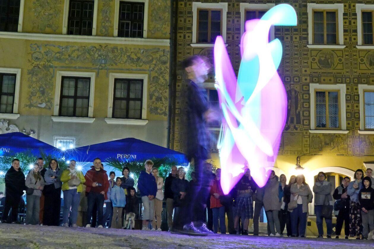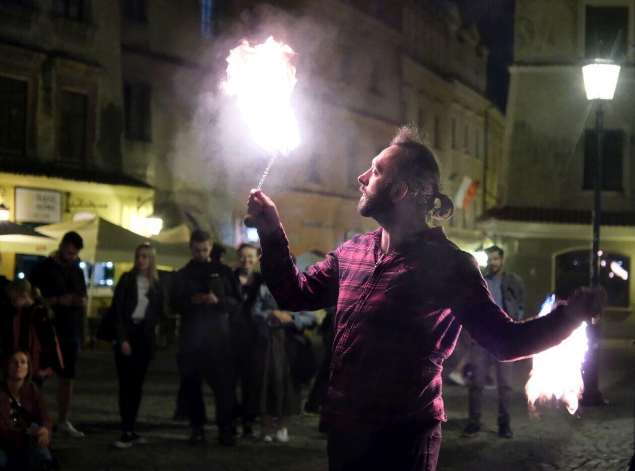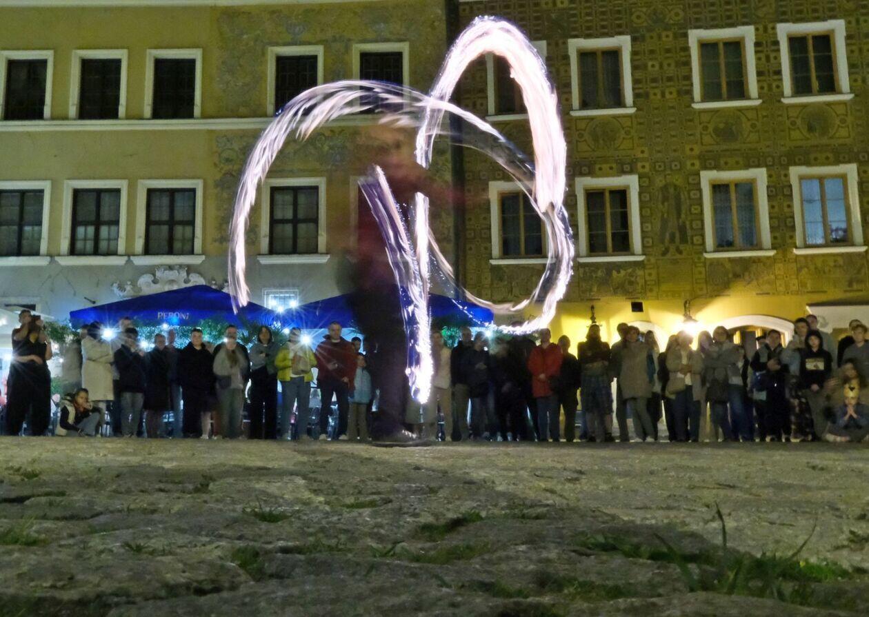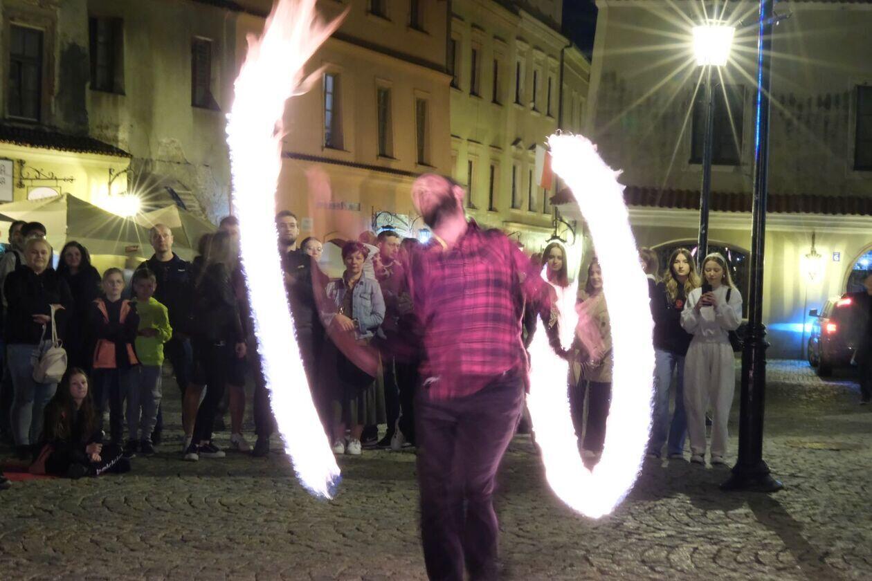 Fire show sztukmistrzów na rozpoczęcie majowego weekendu