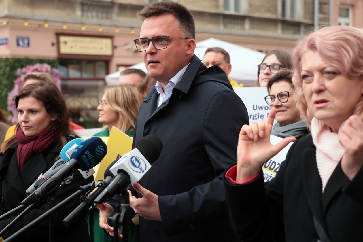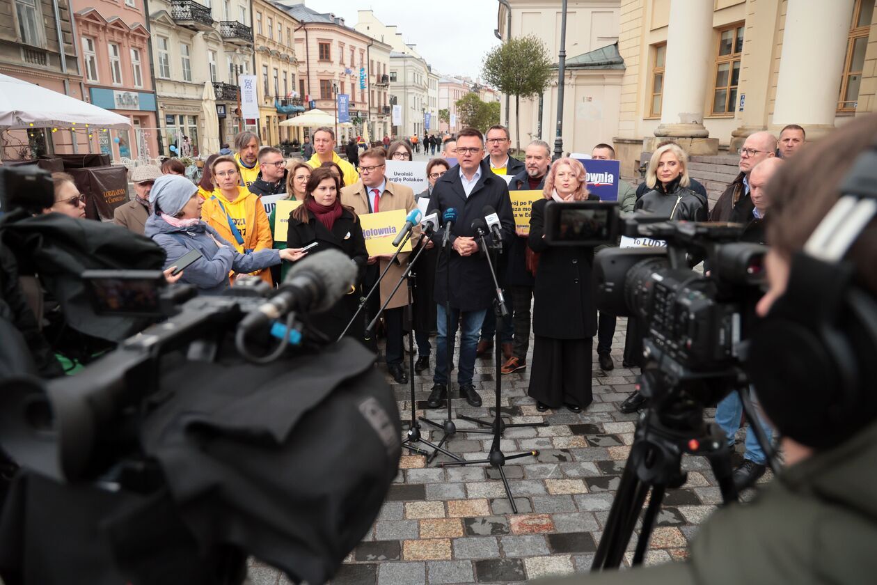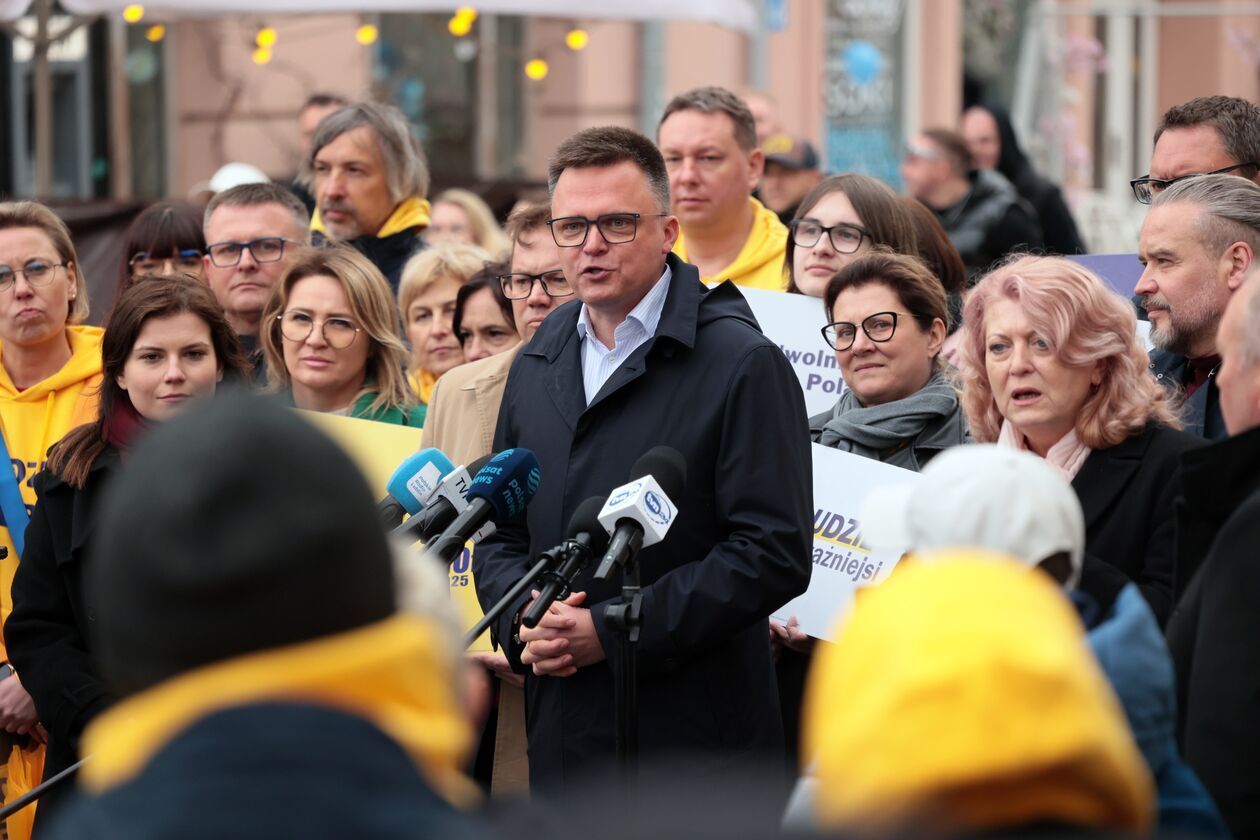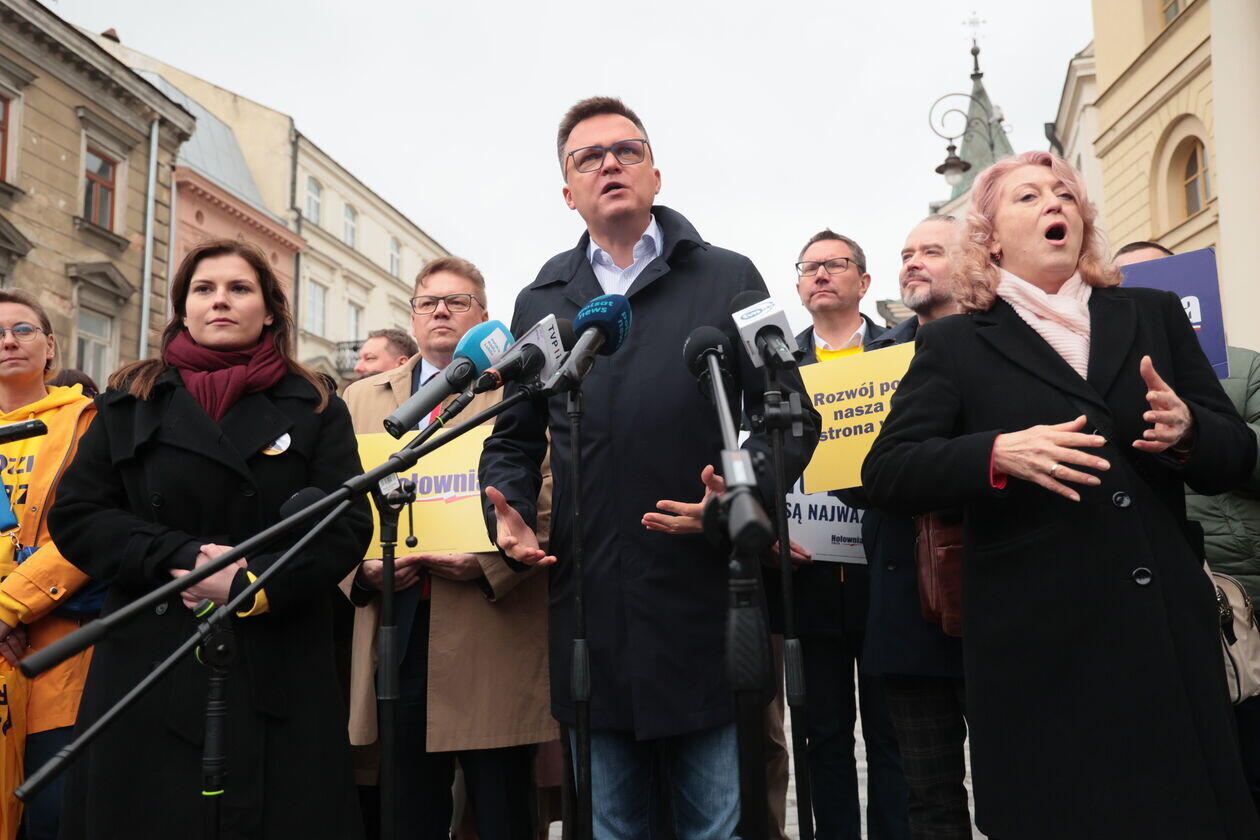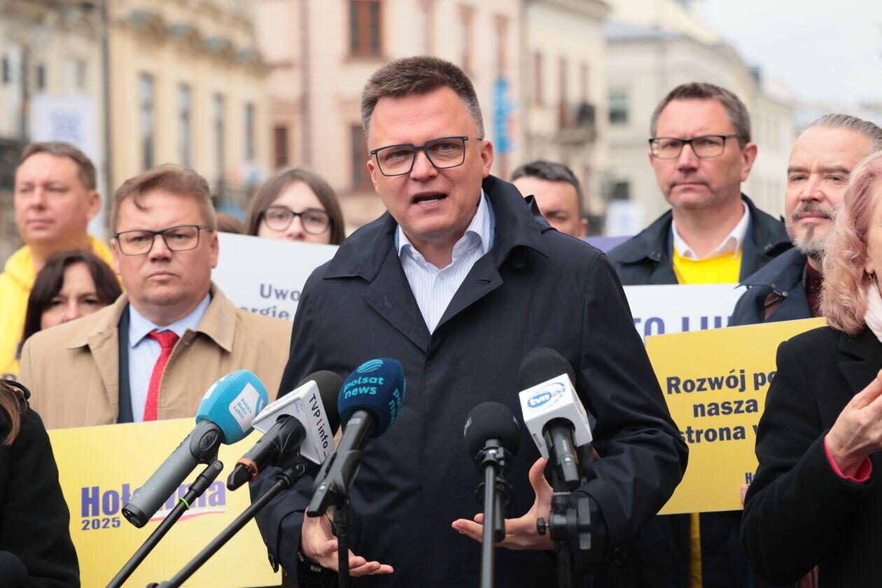 Konferencja prasowa kandydata na prezydenta Szymona Hołowni.