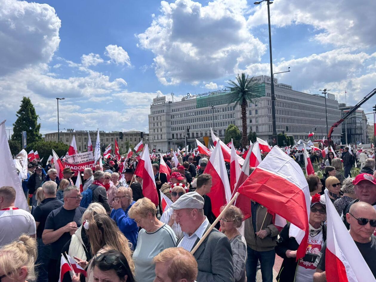 Zwolennicy Karola Nawrockiego na marszu w Warszawie