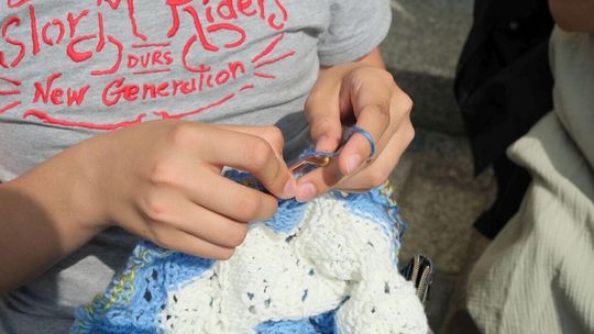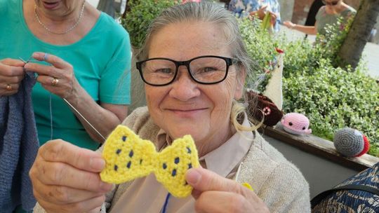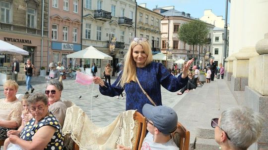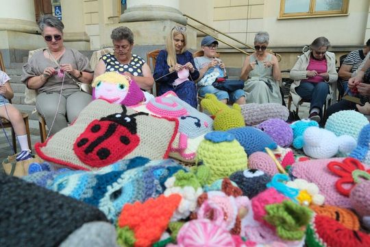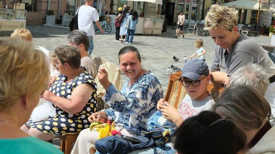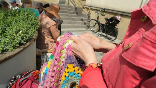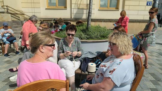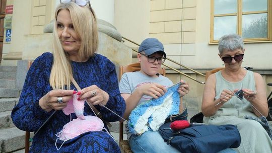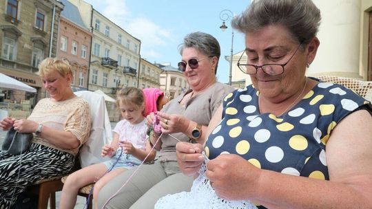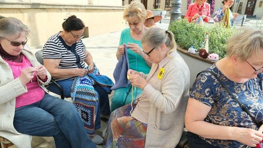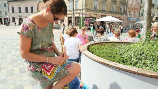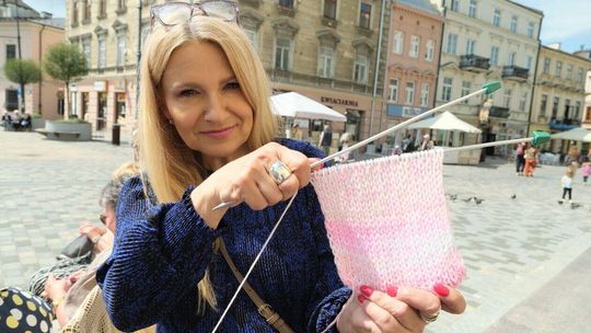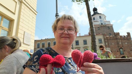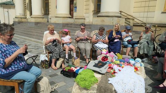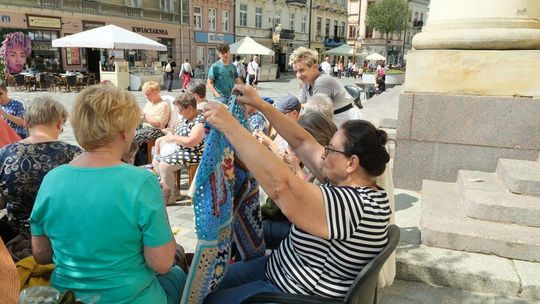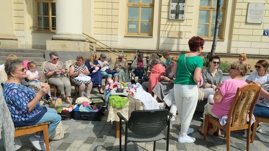 Światowy Dzień Dziergania przed lubelskim Ratuszem