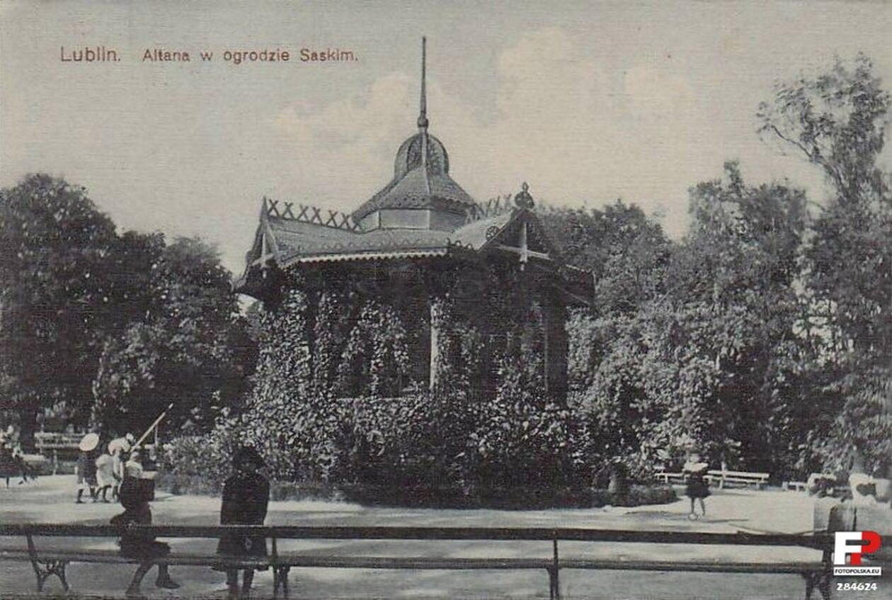 Altana w Ogrodzie Saskim dawała cień w upalne dni spacerowiczom. Obecnie w jej miejscu znajduje się tylko podwyższenie.