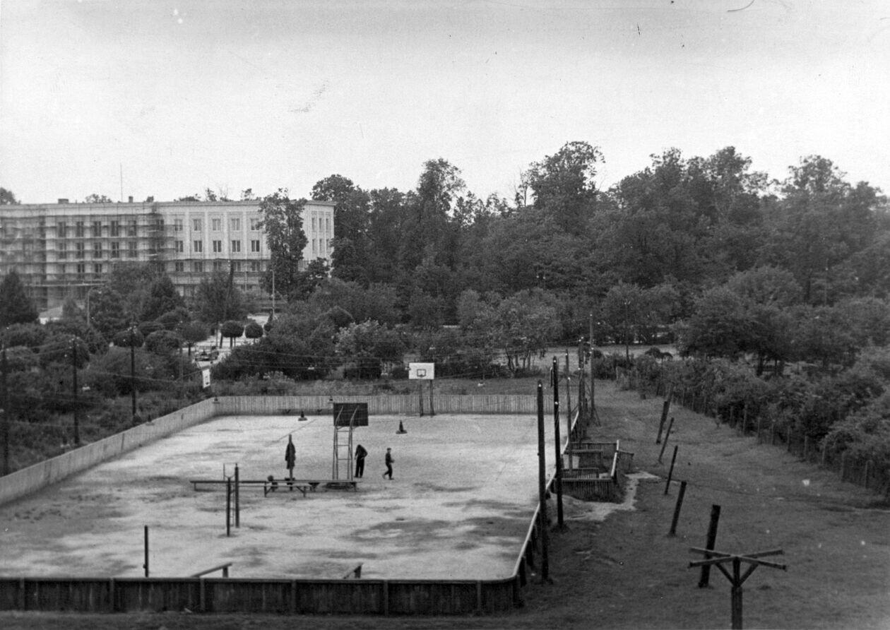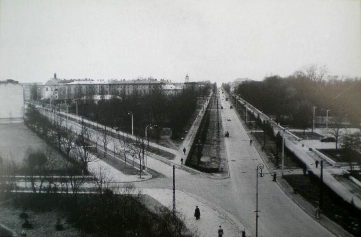 Zdjęcie wykonano w 1956 roku i przedstawia widok na ulicę Grottgera. Obecnie miesci się tutaj Lubelskie Centrum Konferencyjne oraz Urząd Marszałkowski.