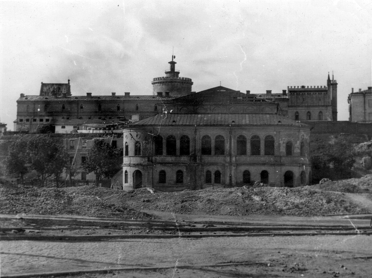 Zdjęcie wykonane w czasie II wojny światowej. W budynku przylegającym do pałacu Czartoryskich mieściło się kino Corso.