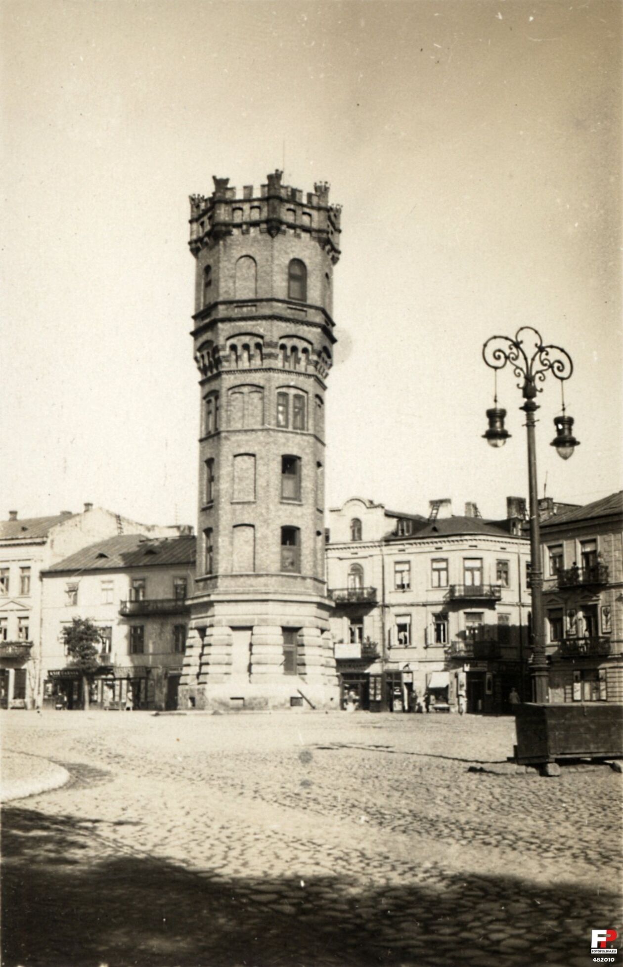 Wieża Ciśnień na placu Wolności. Wybudowana została pod koniec XIX wieku, obecna w przestrzeni miasta była do lipca 1944 roku. Podczas walk wieża spłonęła, w stopniu nie nadającym się do odbudowy. Definitywnie rozebrana w 1946 roku.
