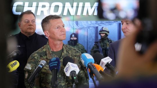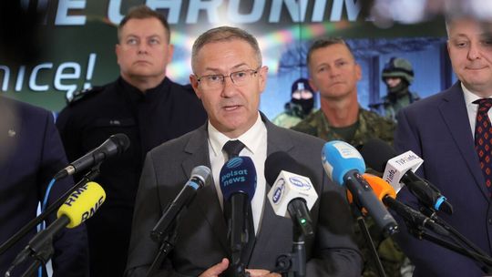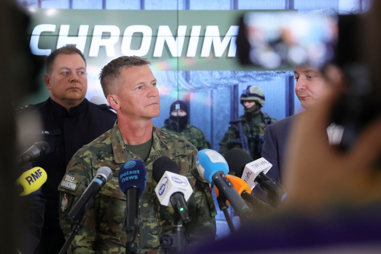 Konferencja prasowa Wojewody Lubelskiego dotycząca bezpieczeństwa na granicy.