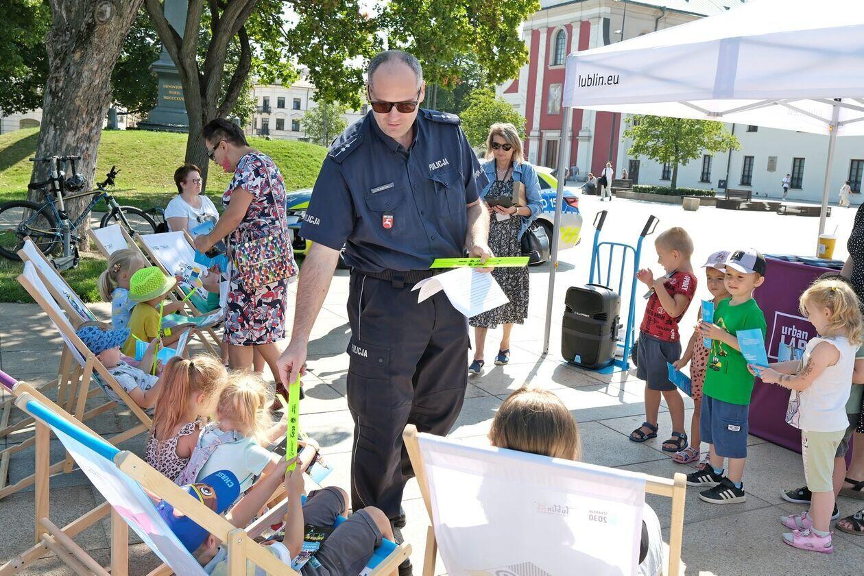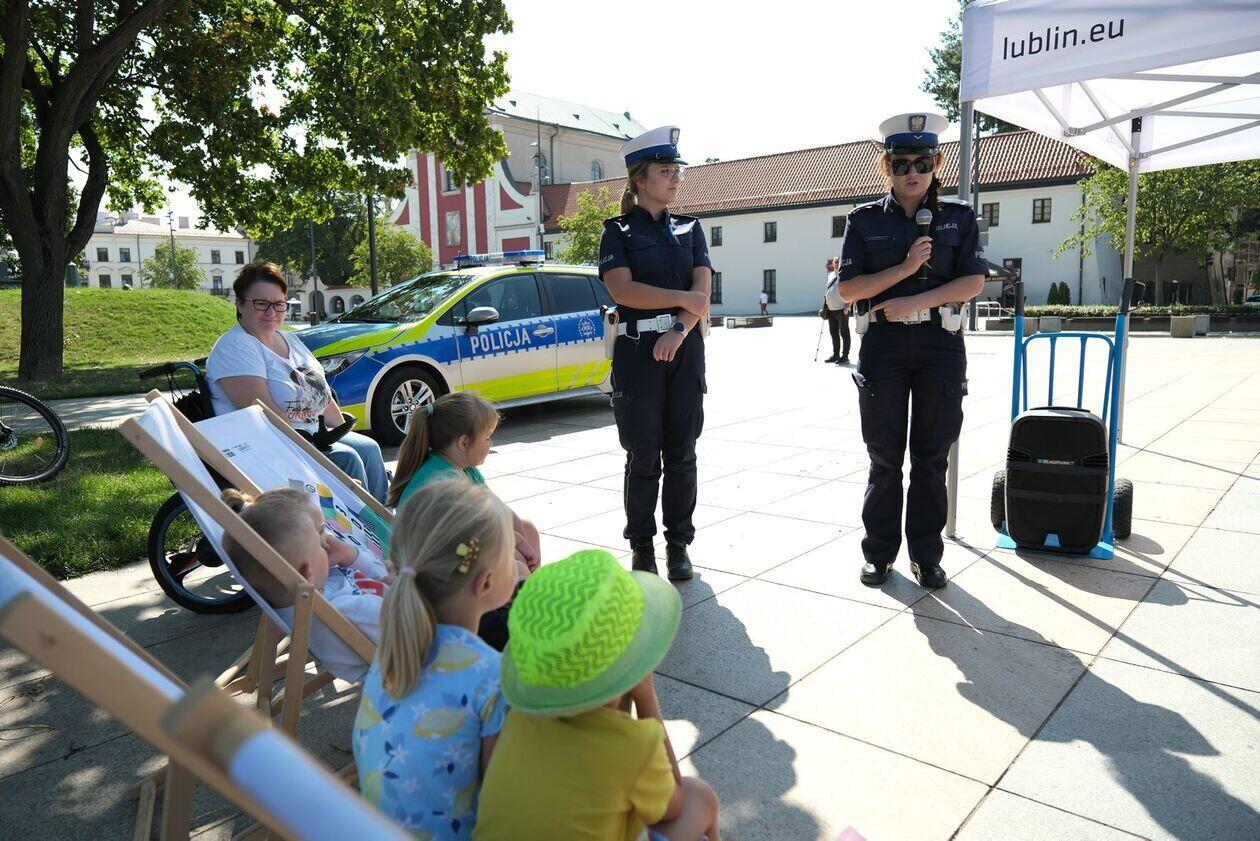 Zajęcia z bezpiecznego poruszania się na hulajnogach na pl. Litewskim