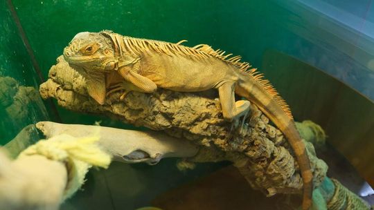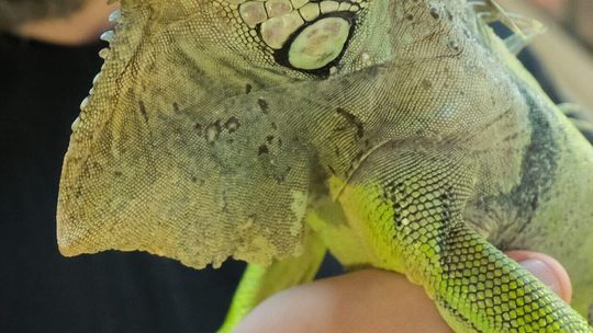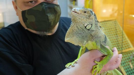 Bartłomiej Gorzkowski z iguaną imieniem Ropniak, honorowym mieszkańcem i ambasadorem lubelskiego schroniska.