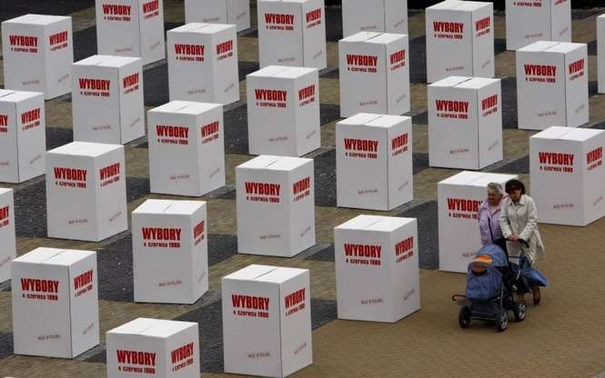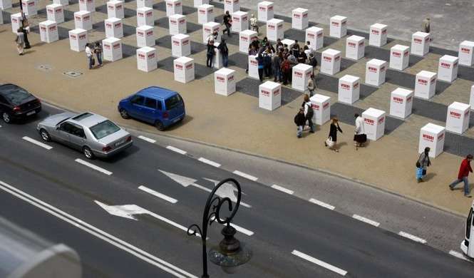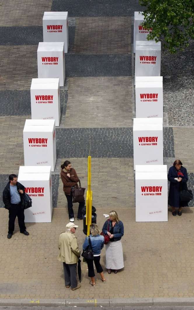 Na pl. Litewskim stoi170 pudel symbolizujących urny wyborcze. Symboliczna instalacja ma upamietnic wybory 4 czerwca 1989 roku.